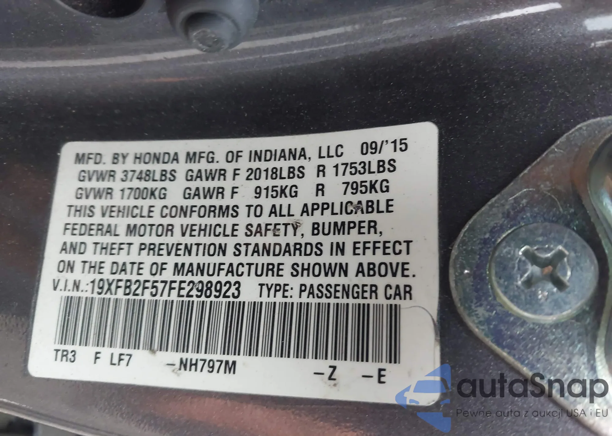 • VIN 19XFB2F57FE298923