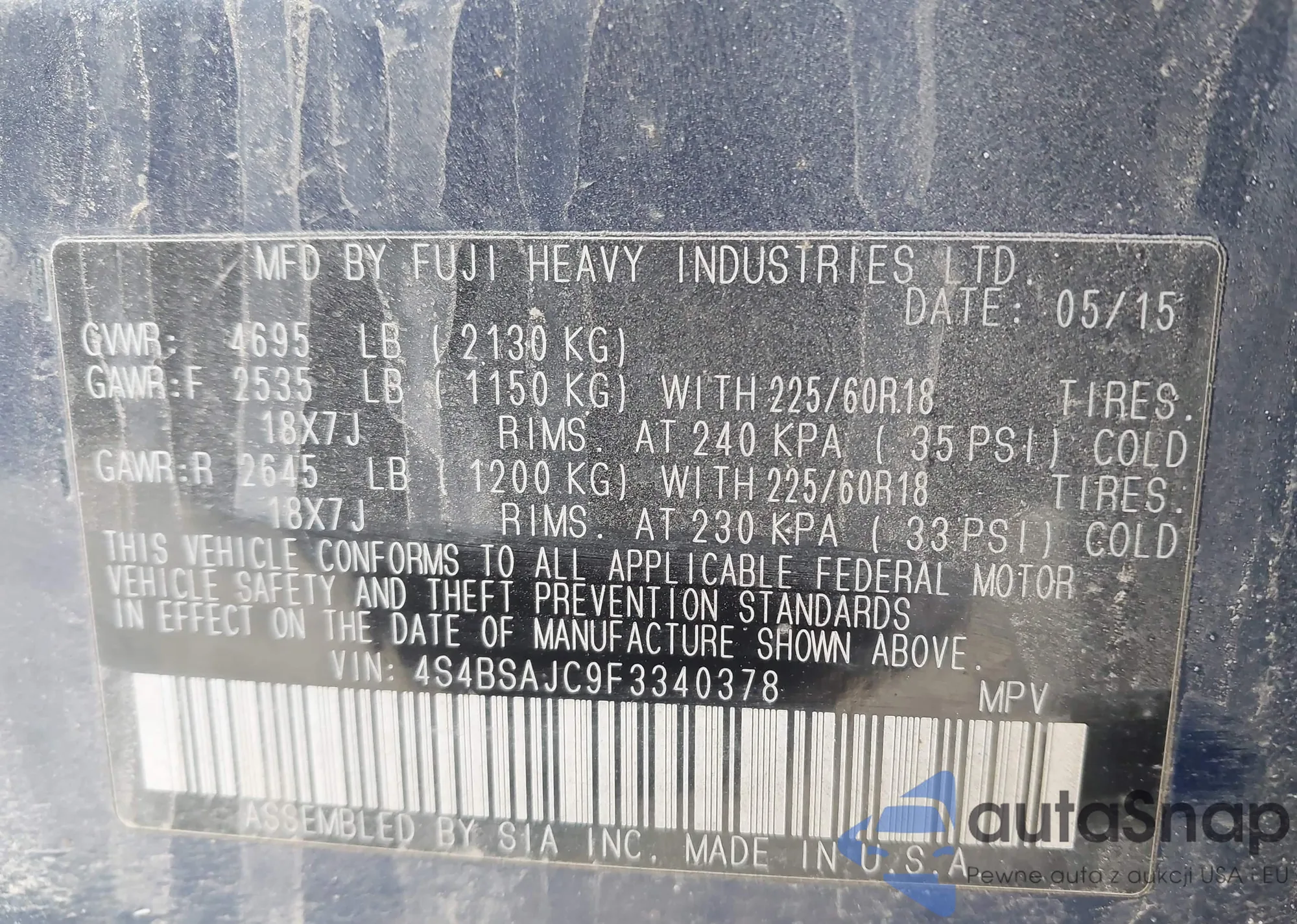 • VIN 4S4BSAJC9F3340378