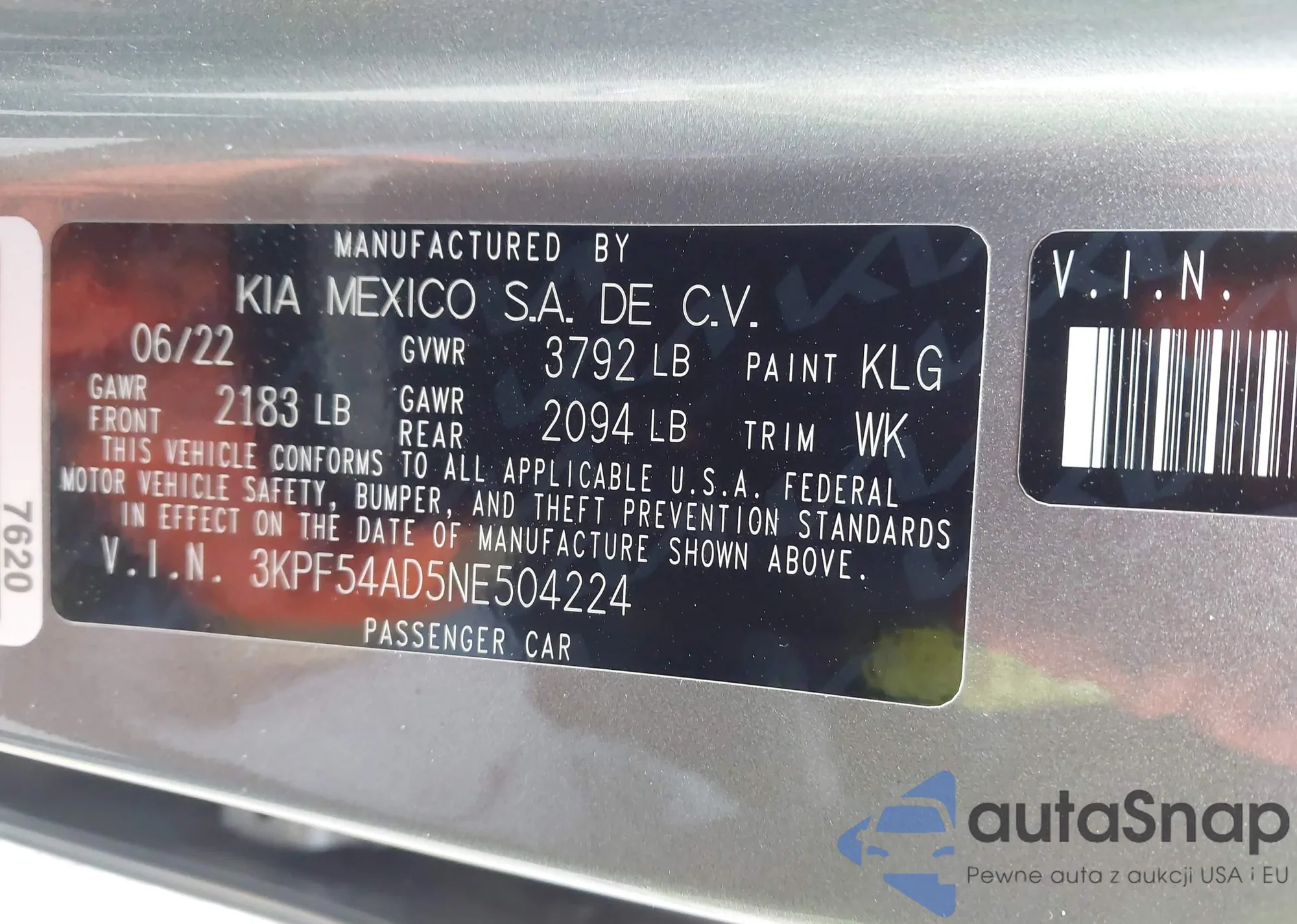 • VIN 3KPF54AD5NE504224