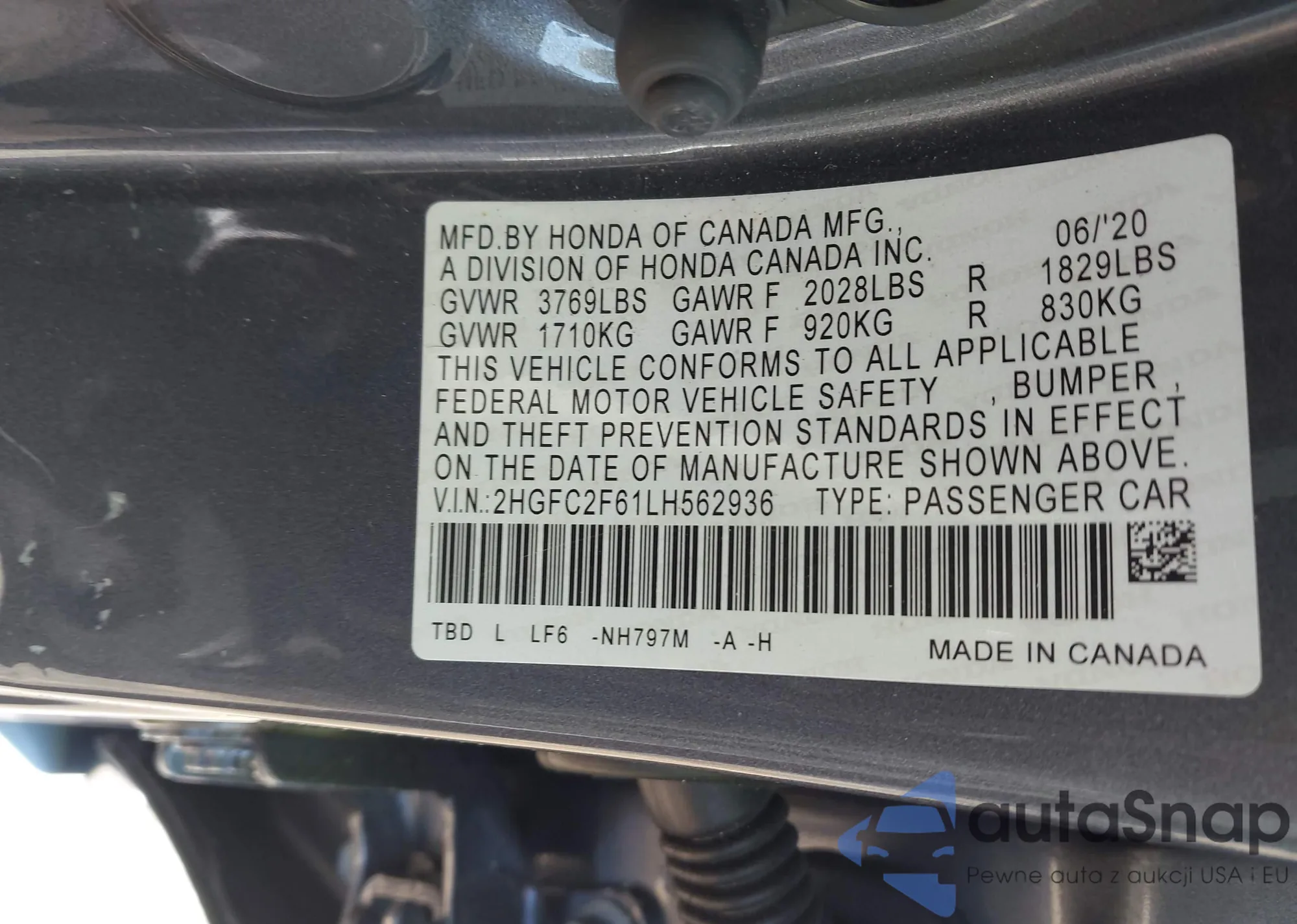 • VIN 2HGFC2F61LH562936