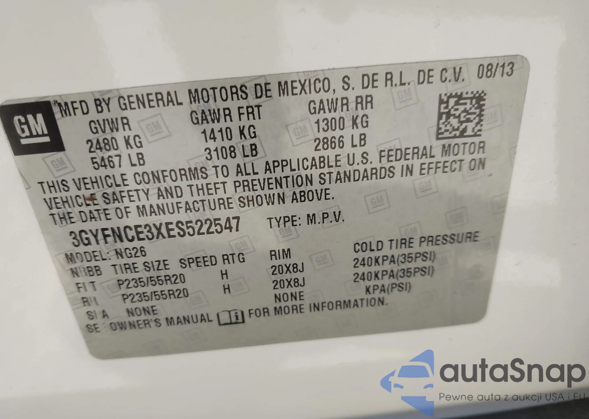 LOT: 43896029 VIN: 3GYFNCE3XES522547