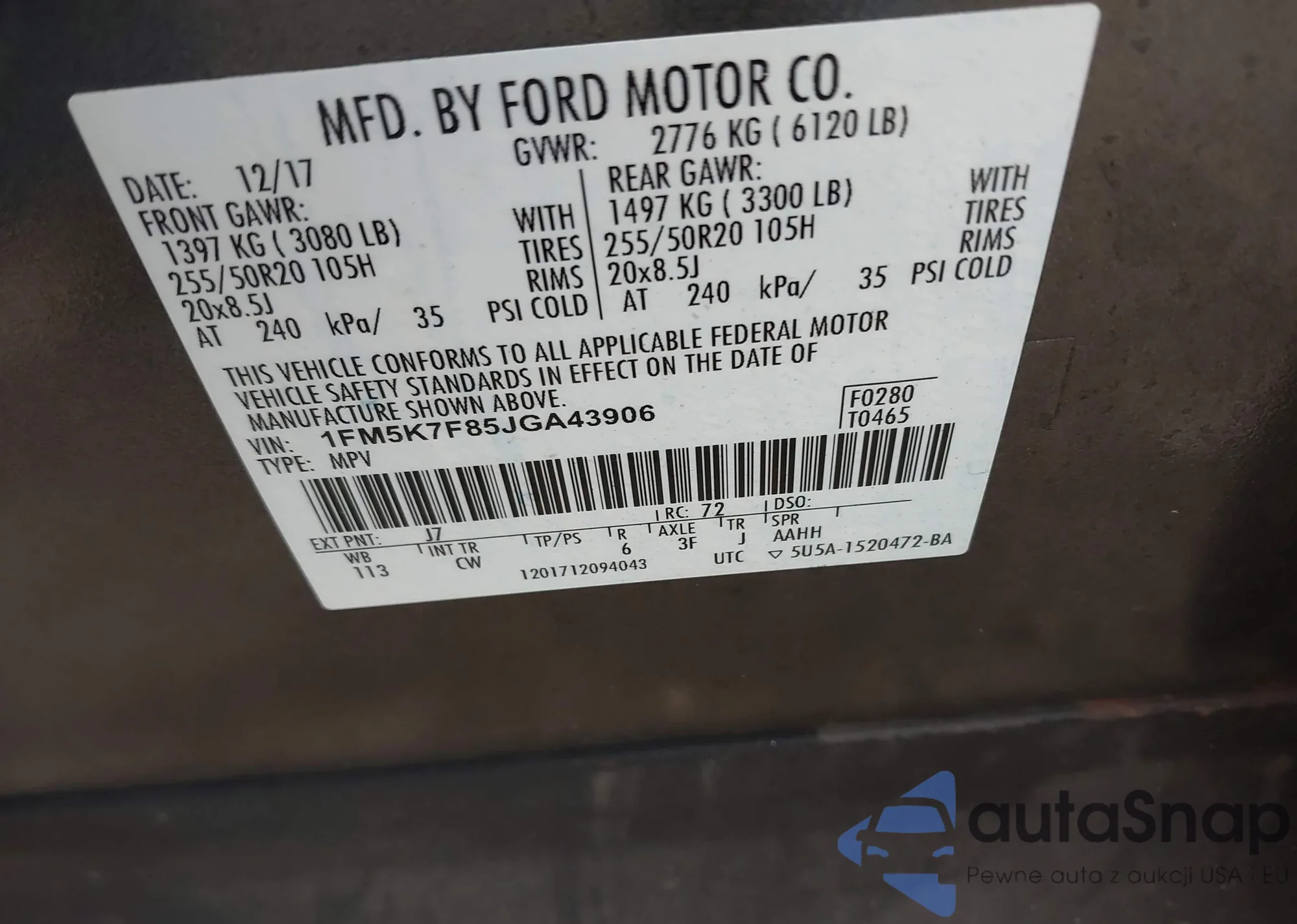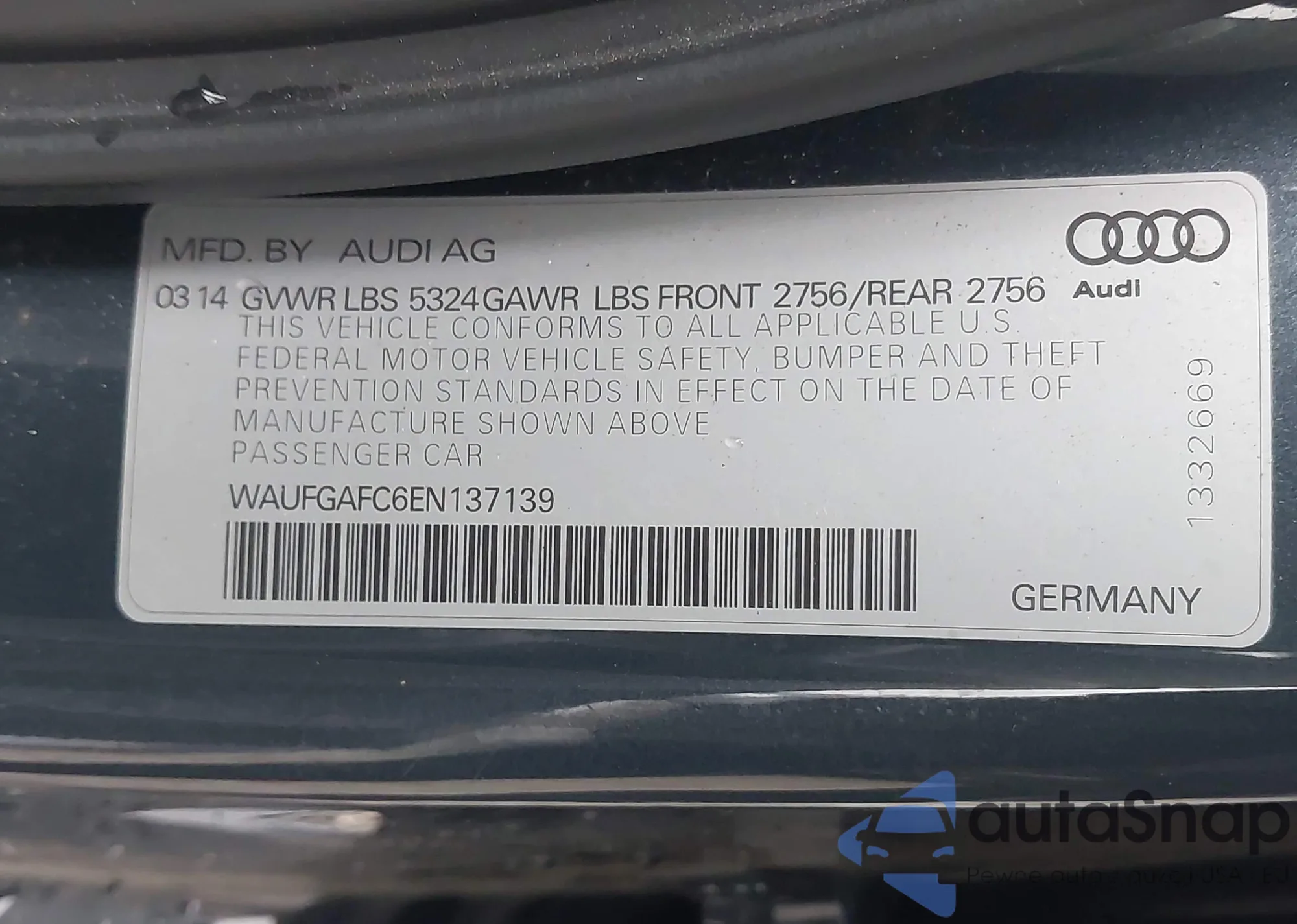 LOT: 43819638 VIN: WA1LFAFP1FA113569