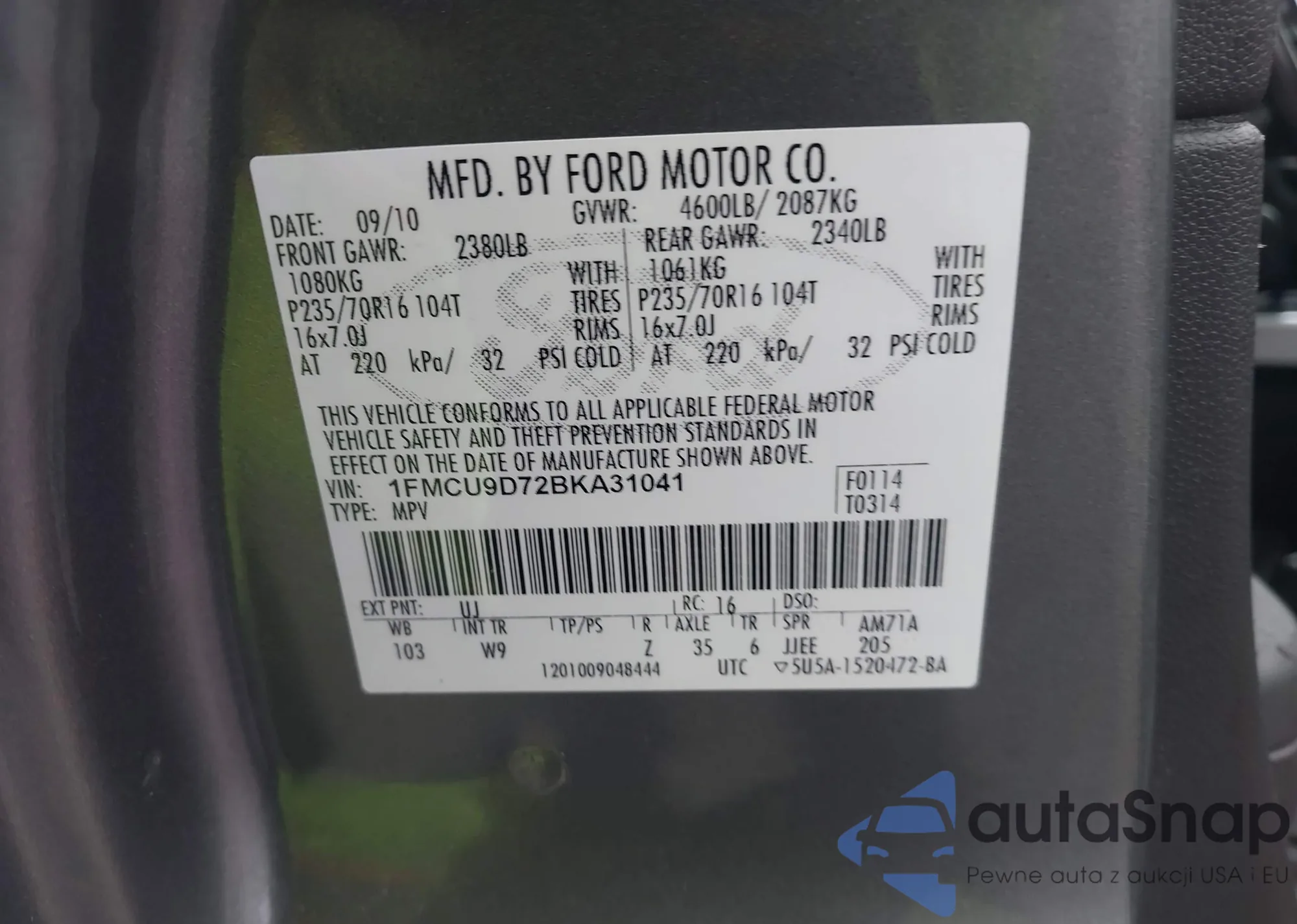 LOT: 43646948 VIN: 1FMCU0F78FUC63419