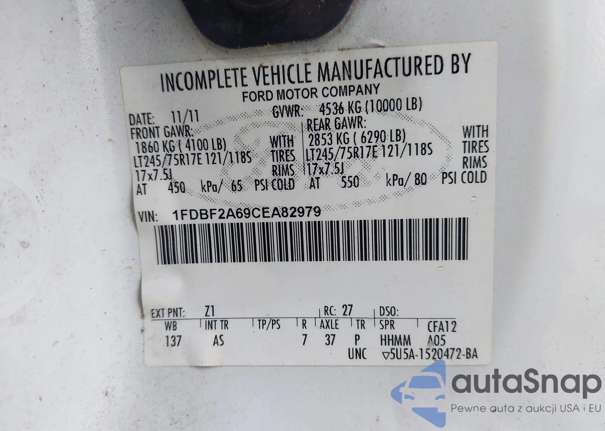 LOT: 42932809 VIN: 1FDBF2A69CEA82979