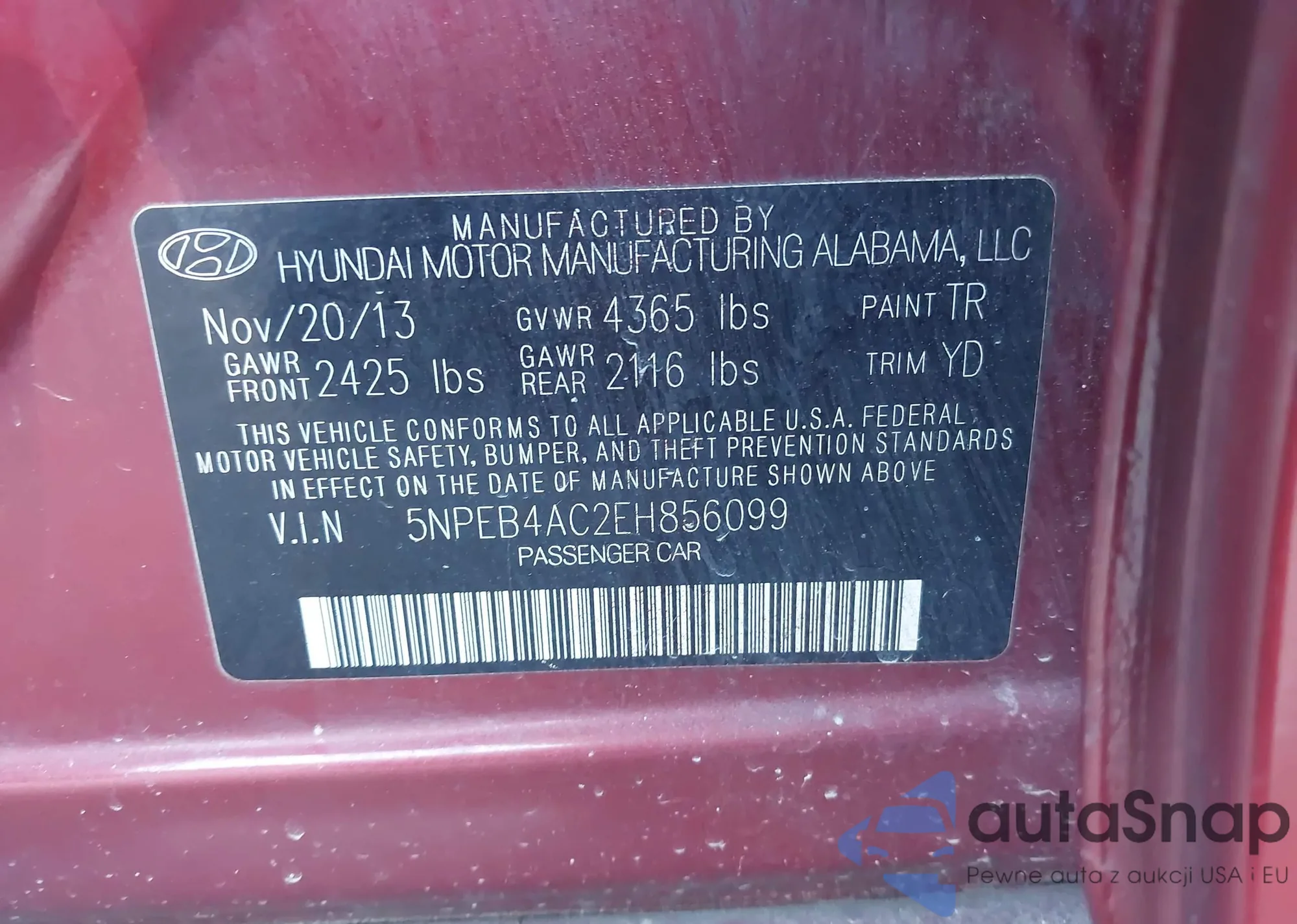 • VIN 5NPEB4AC2EH856099
