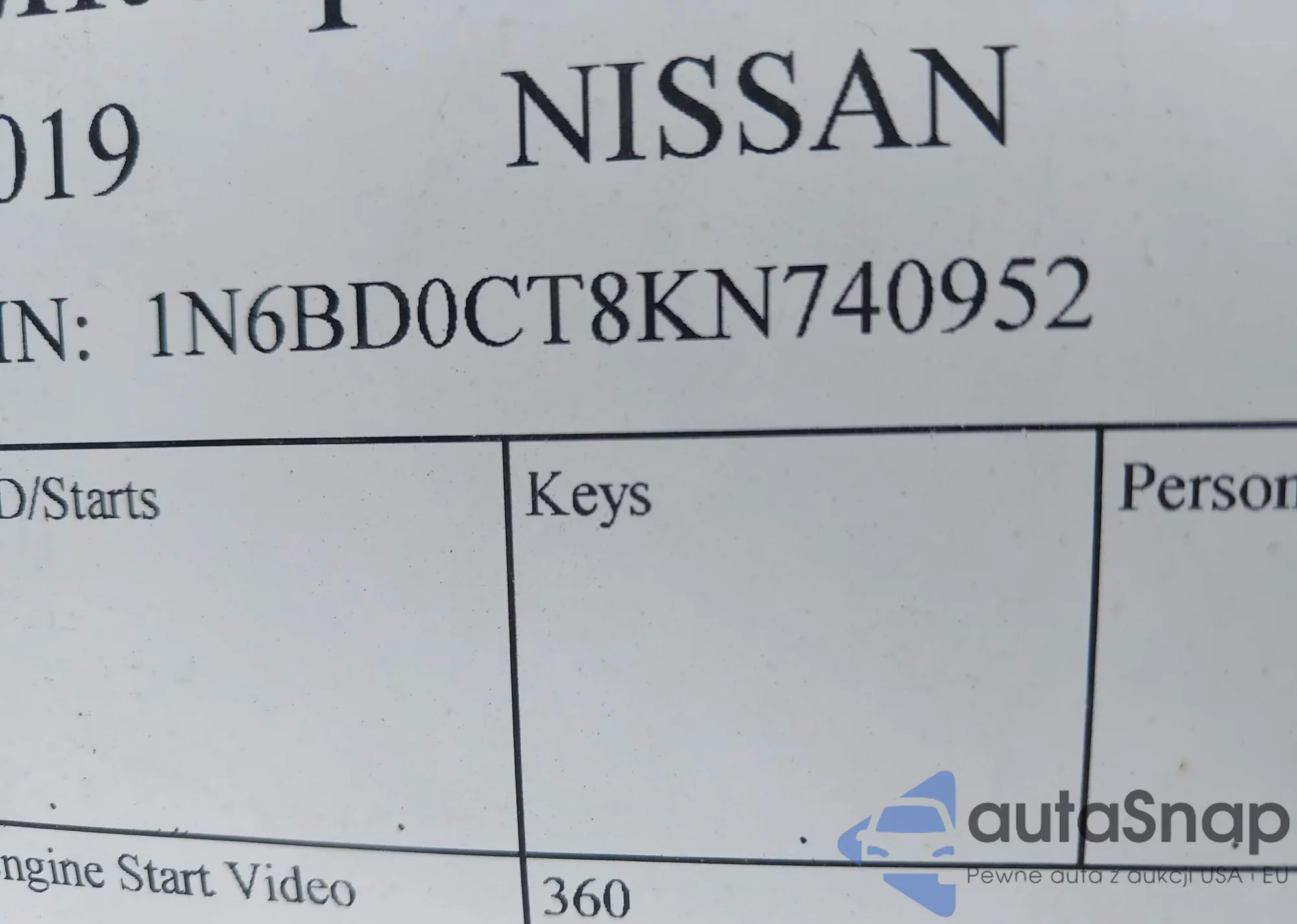 • VIN 1N6BD0CT8KN740952