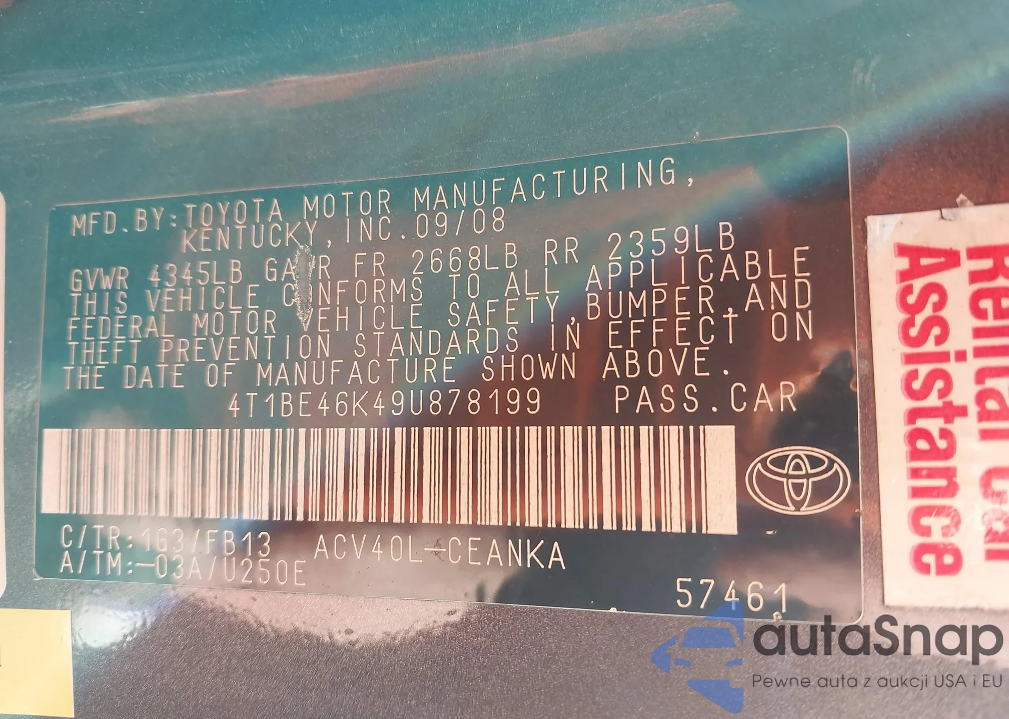 • VIN 4T1BE46K49U878199