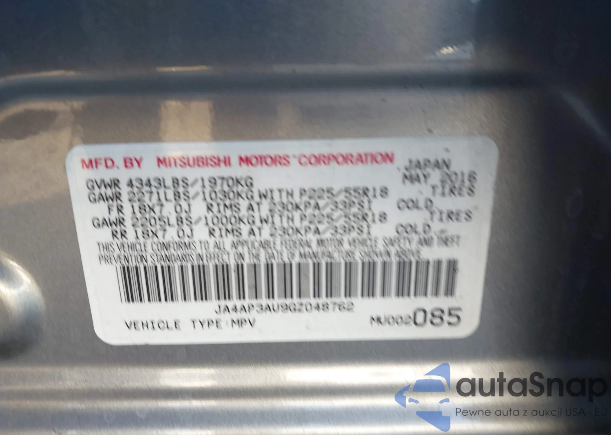 • VIN JA4AP3AU9GZ048762