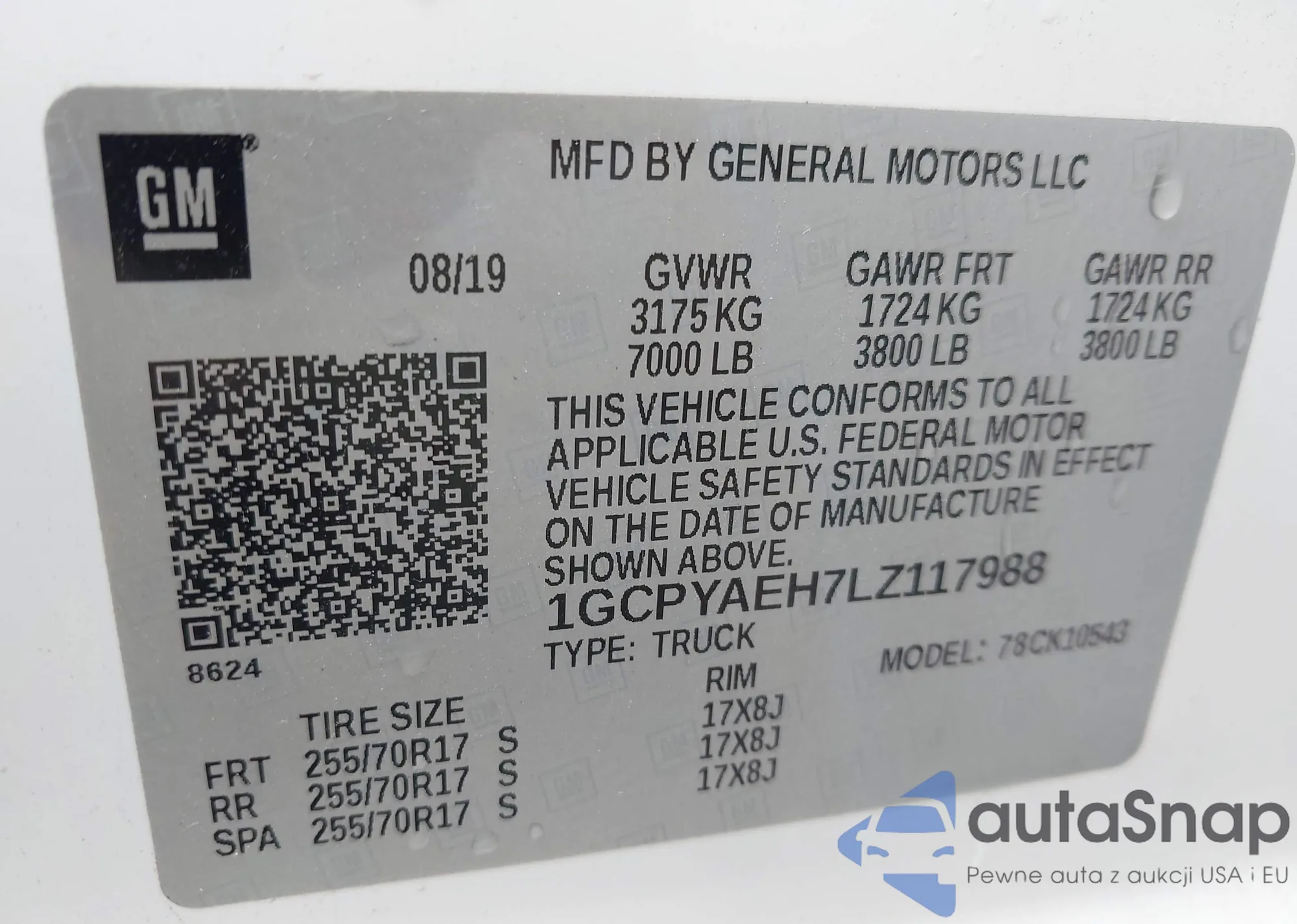 LOT: 43805656 VIN: 1GCPYAEH7LZ117988