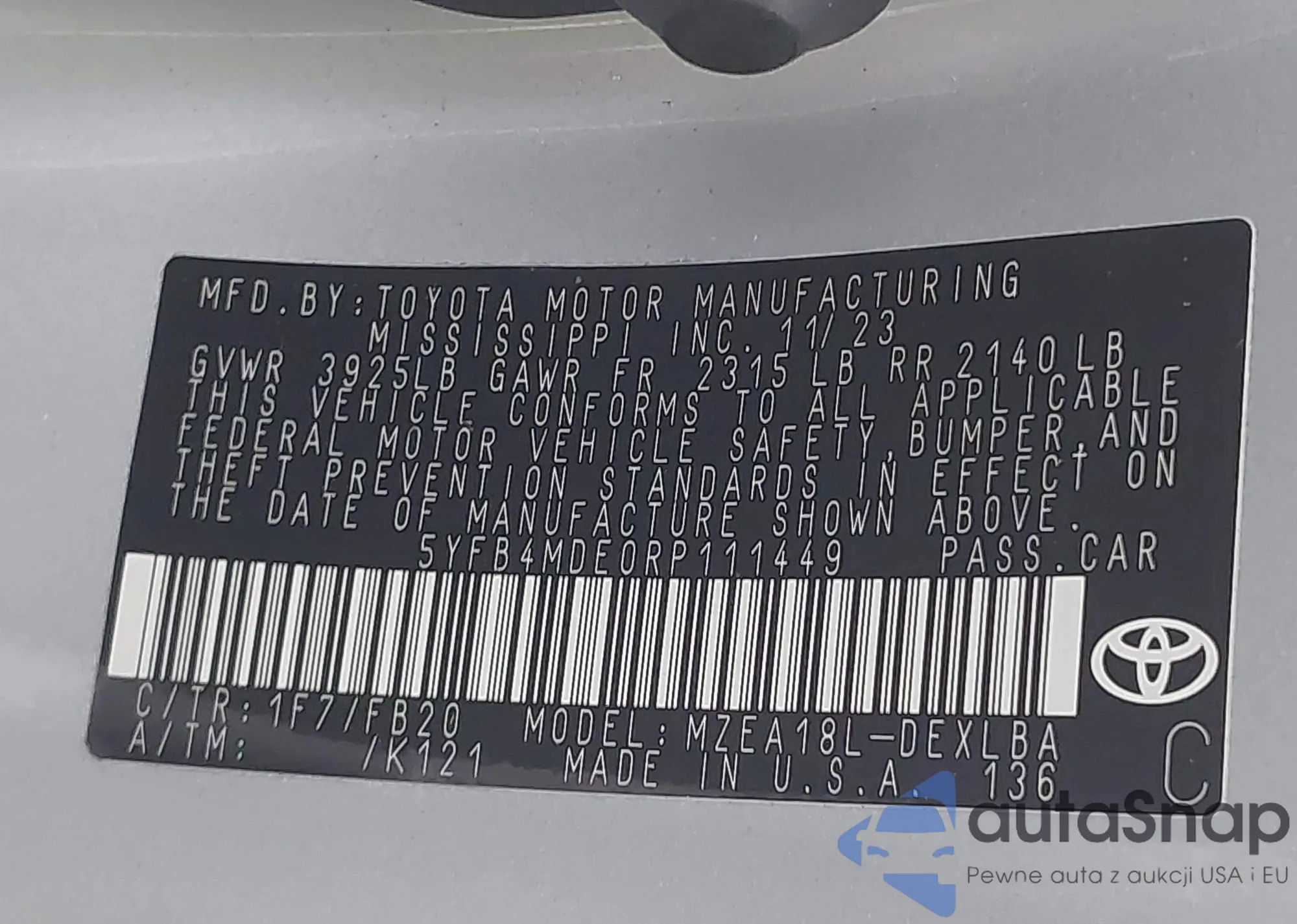 • VIN 5YFB4MDE0RP111449