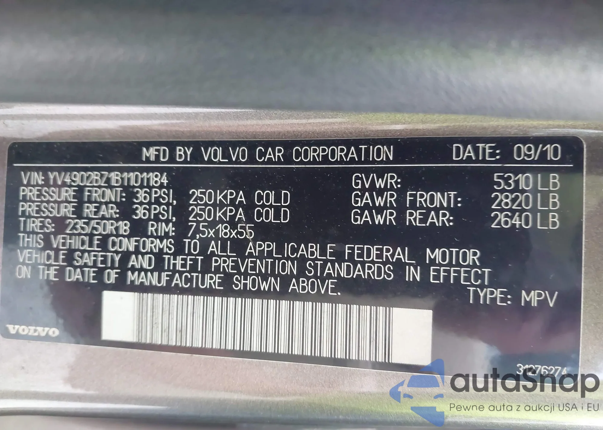 • VIN YV4902BZ1B1101184