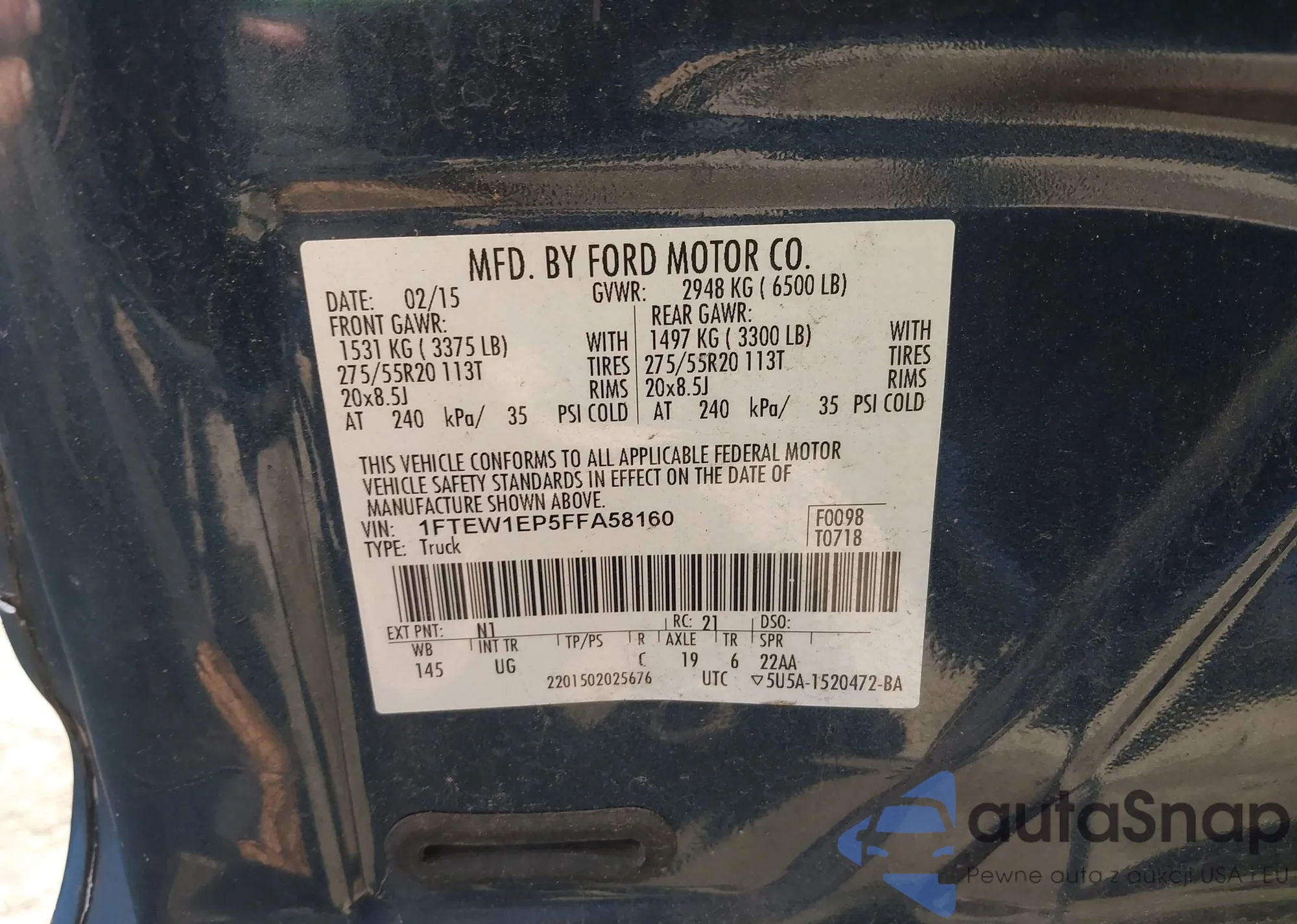 LOT: 43592575 VIN: 1FTEW1EP5FFA58160