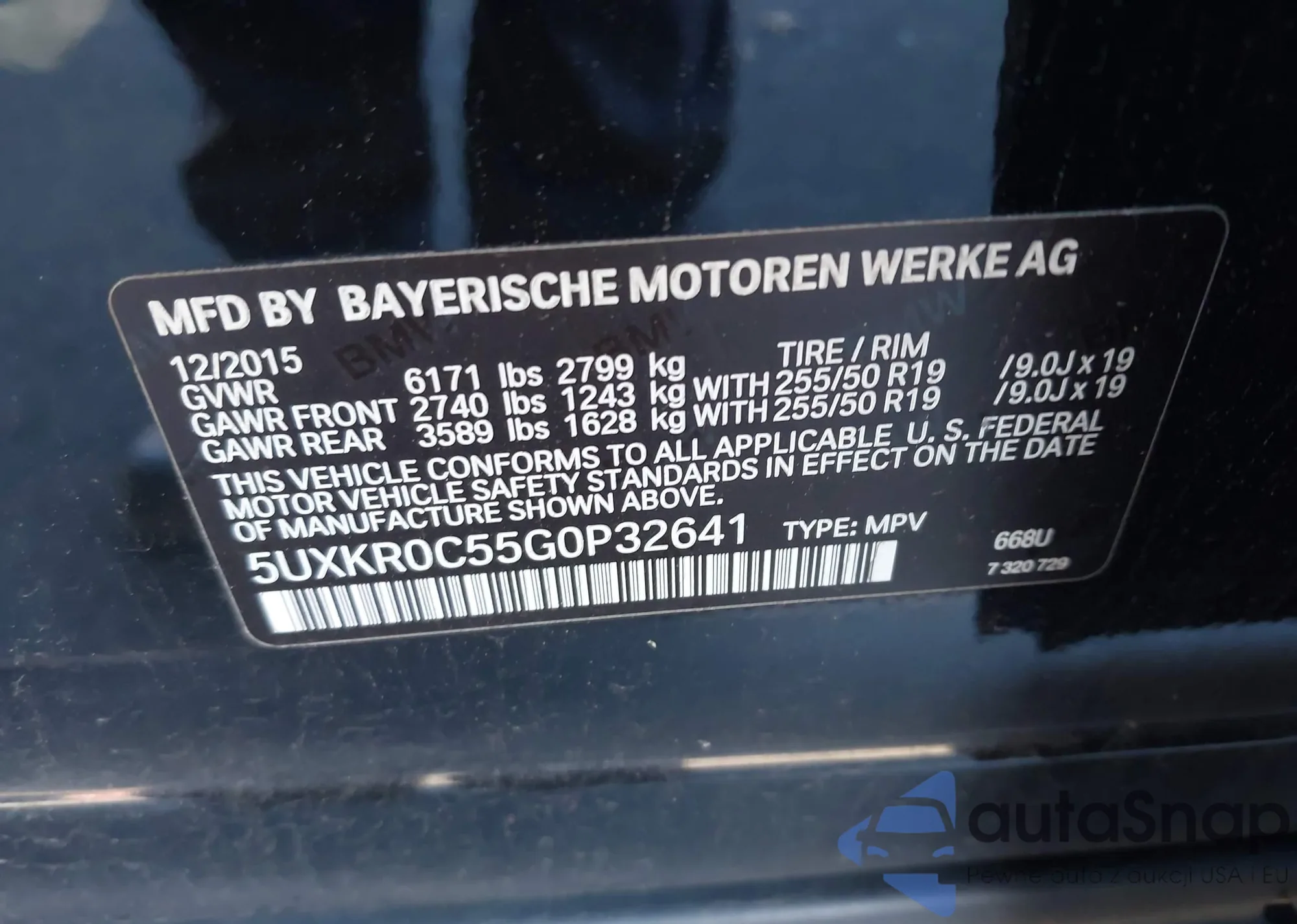 LOT: 43592931 VIN: WBA8E1C50JA167548