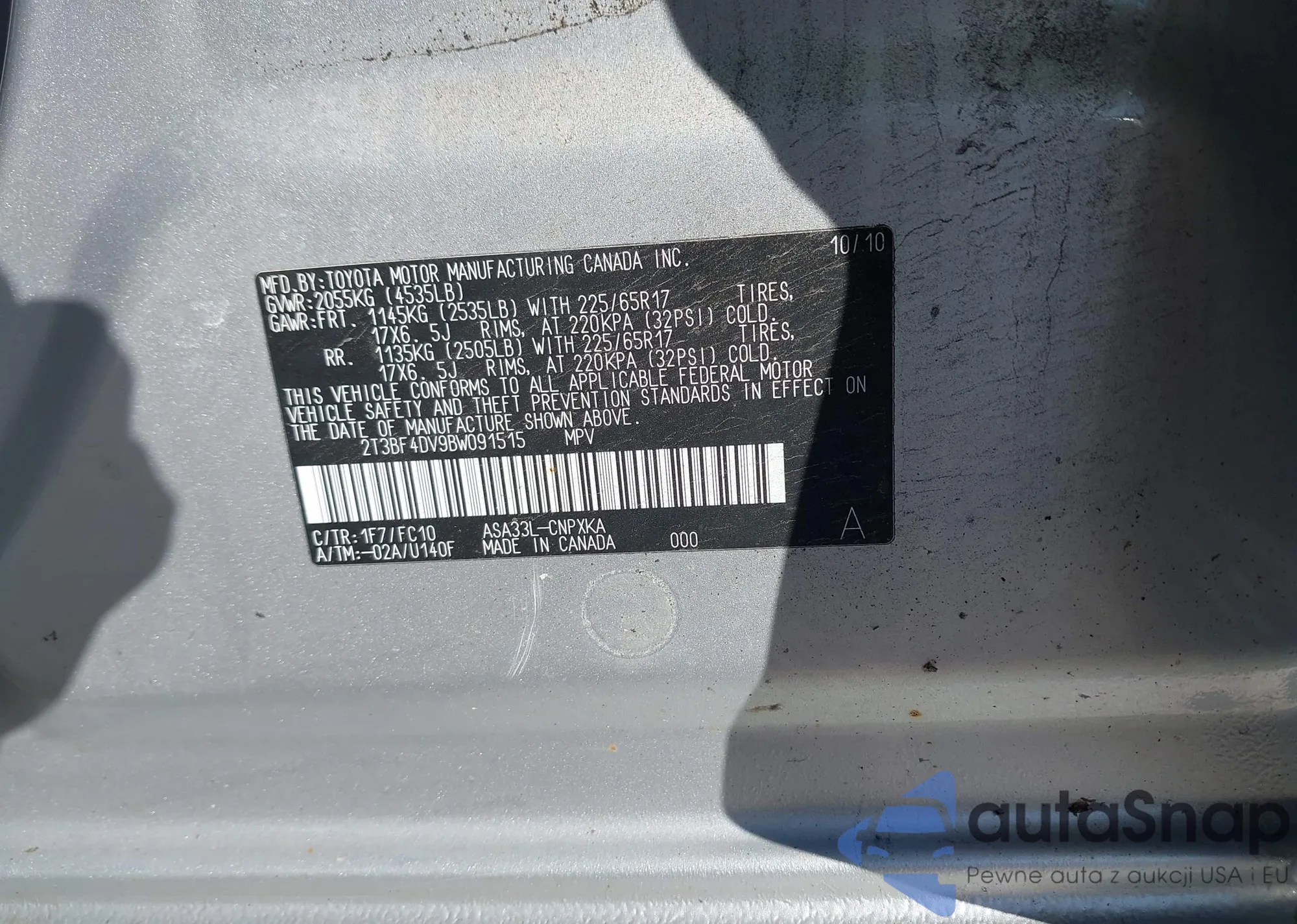 • VIN 2T3BF4DV9BW091515