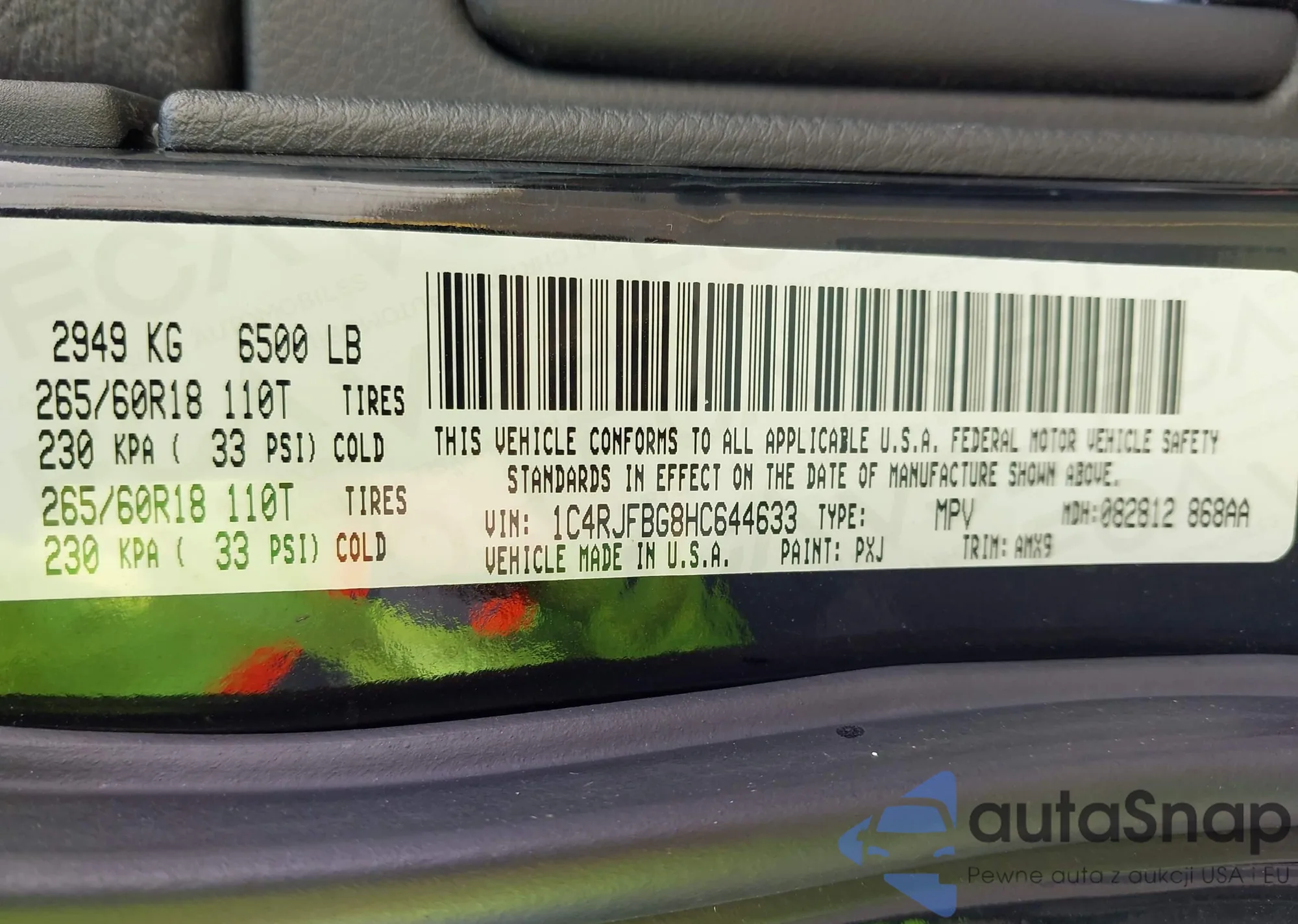 • VIN 1C4RJFBG8HC644633
