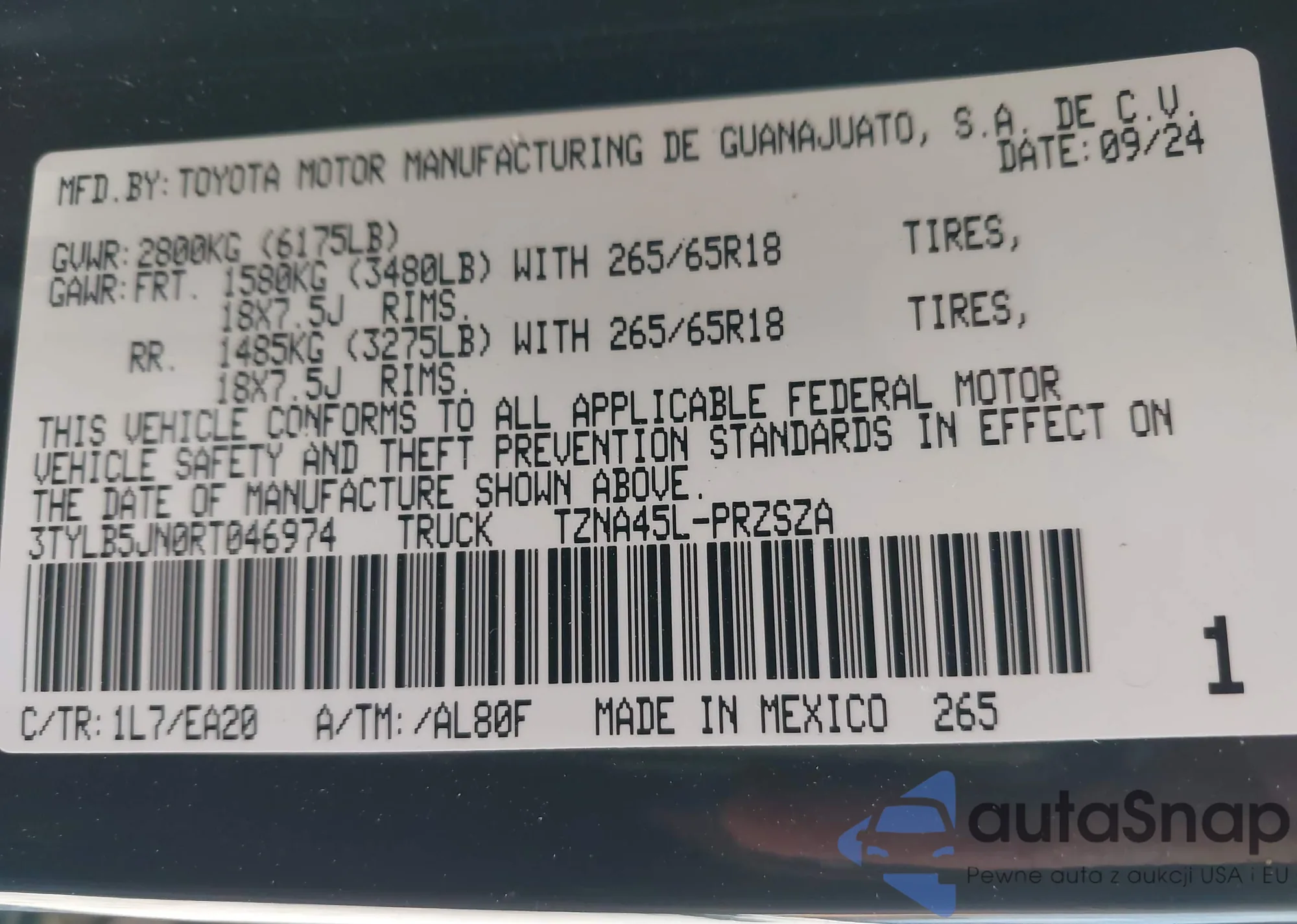 LOT: 43358735 VIN: 3TYLB5JN0RT046974