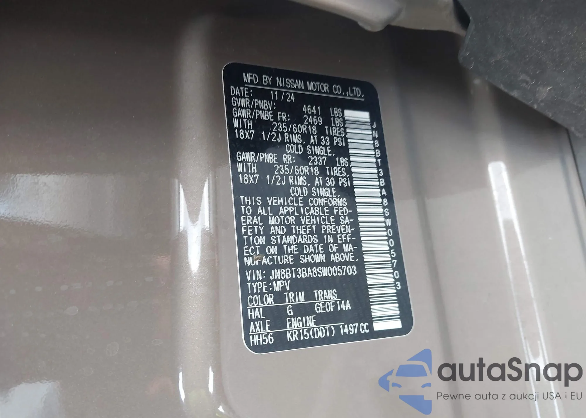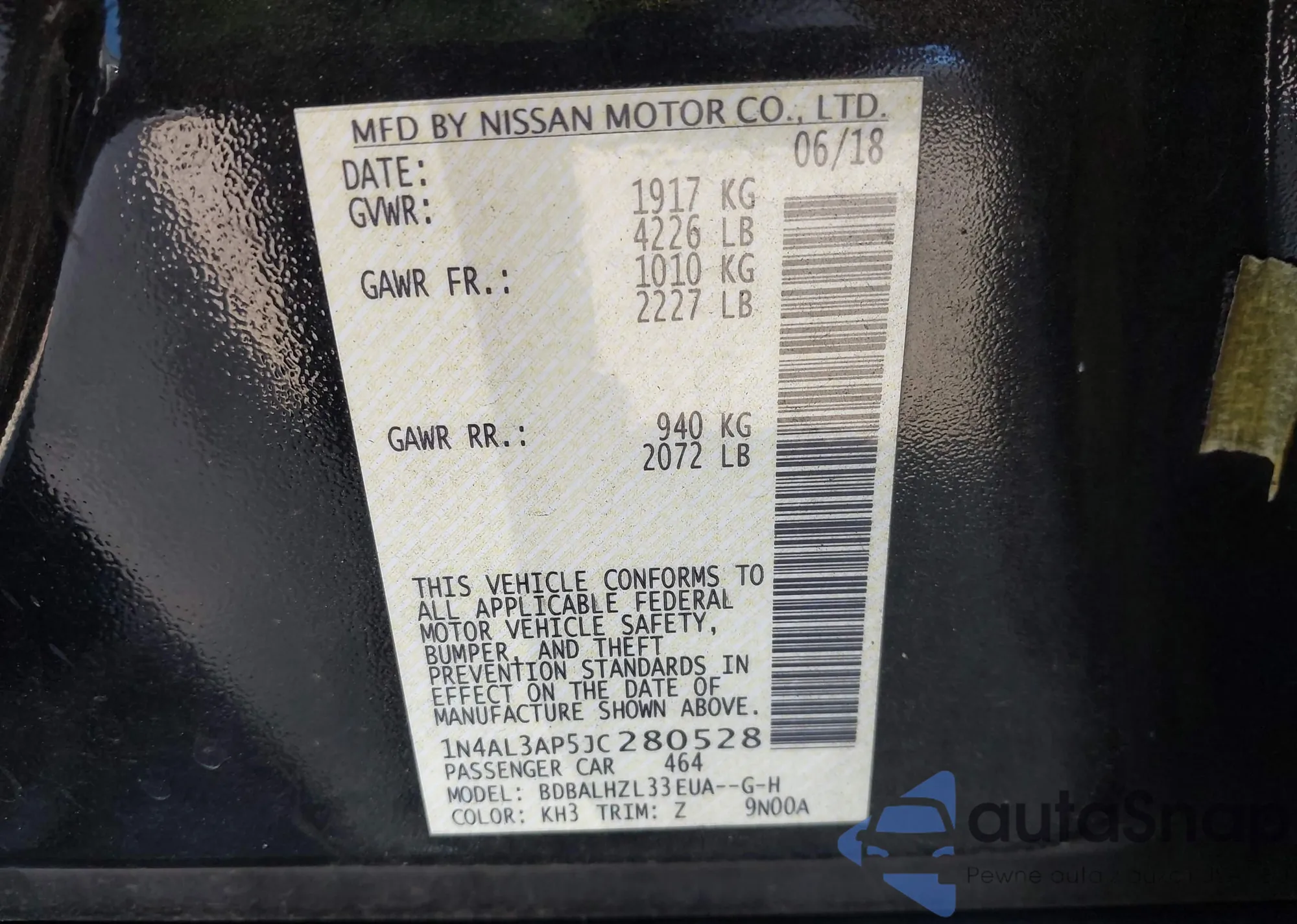 LOT: 43378599 VIN: 1N4AL3AP5JC280528