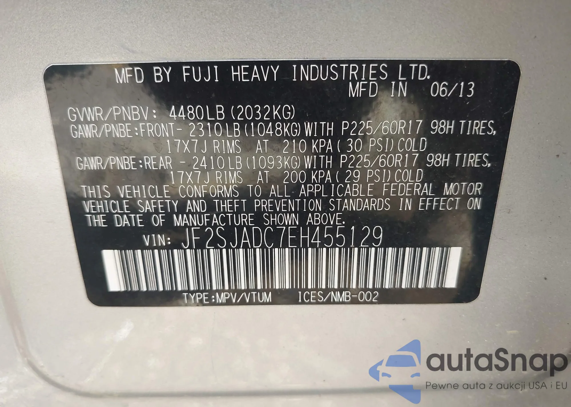 LOT: 43416985 VIN: JF2SJAWC6JH541488