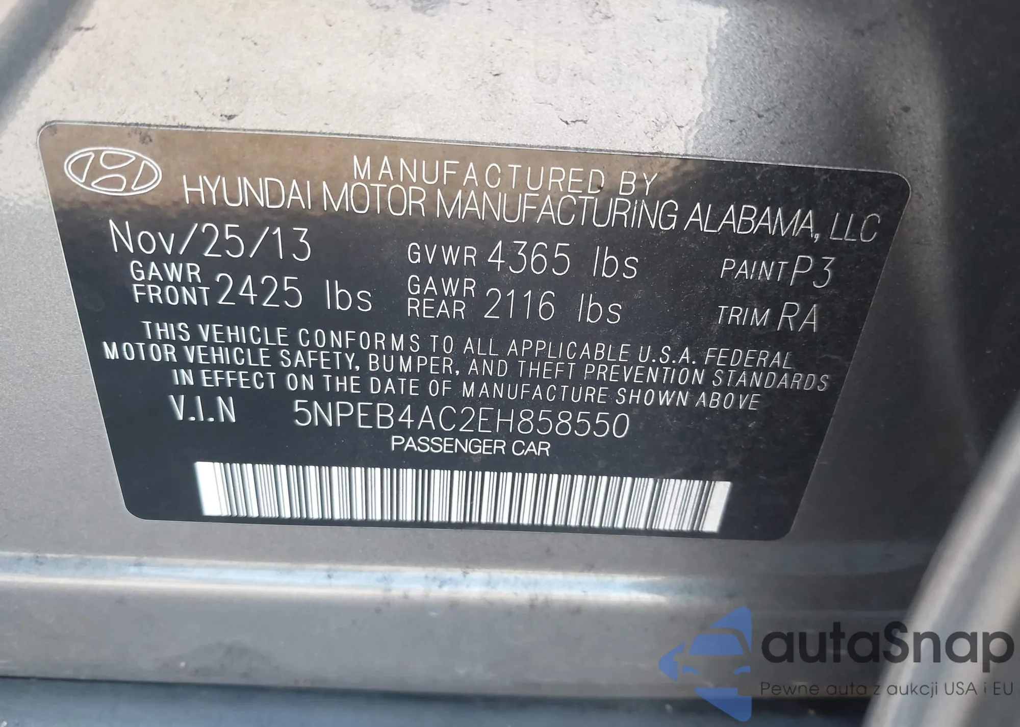 • VIN 5NPEB4AC2EH858550