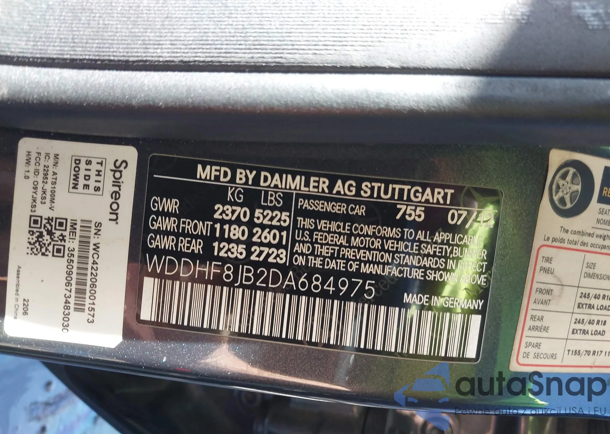 LOT: 43508082 VIN: WDDHF8JB2DA684975