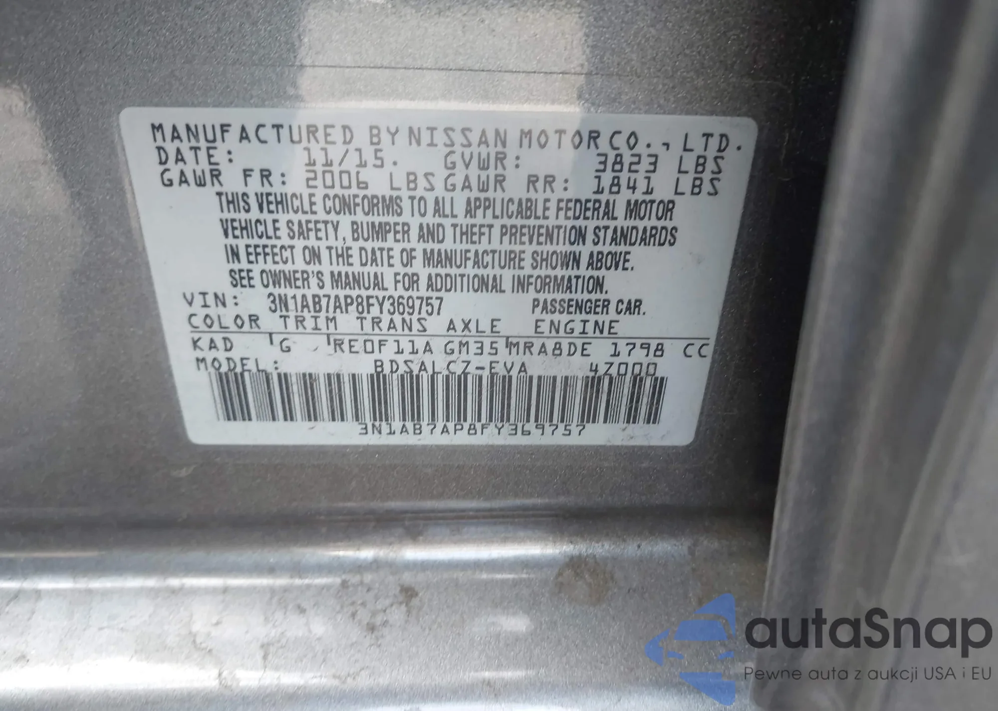 • VIN 3N1AB7AP8FY369757