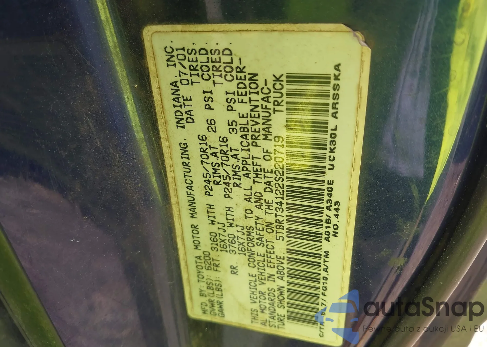 • VIN 5TBRT34122S220719