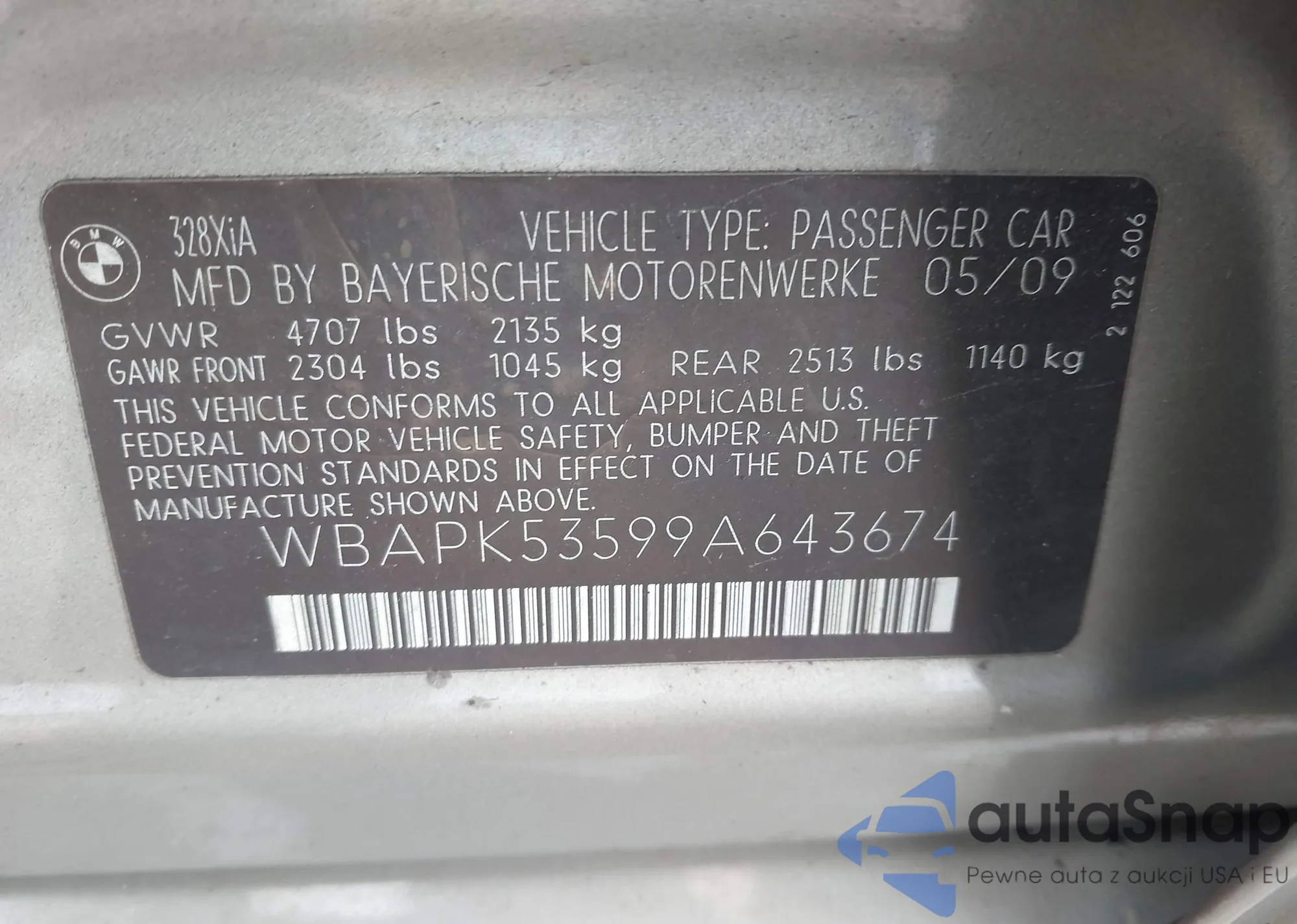 LOT: 43762814 VIN: WMWML33529TX35122