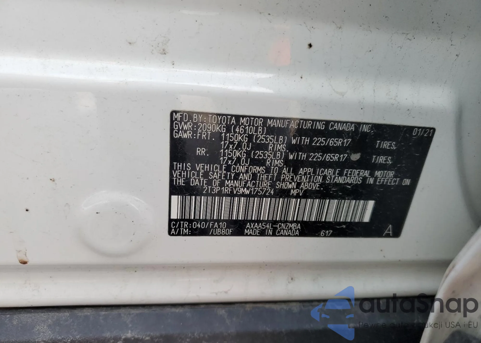 • VIN 2T3P1RFV9MW175724