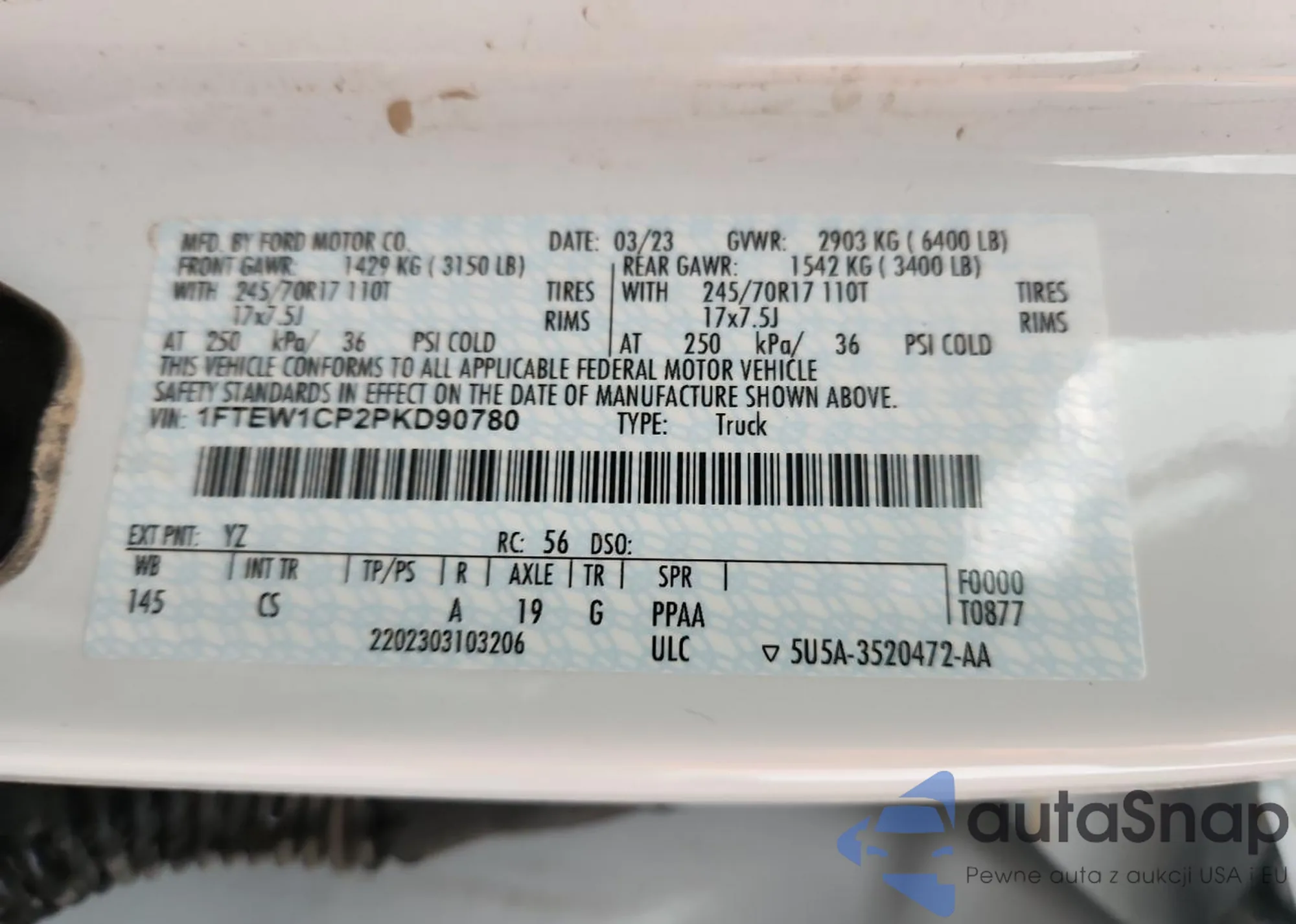 LOT: 71865455 VIN: 1FTEW1CP2PKD90780