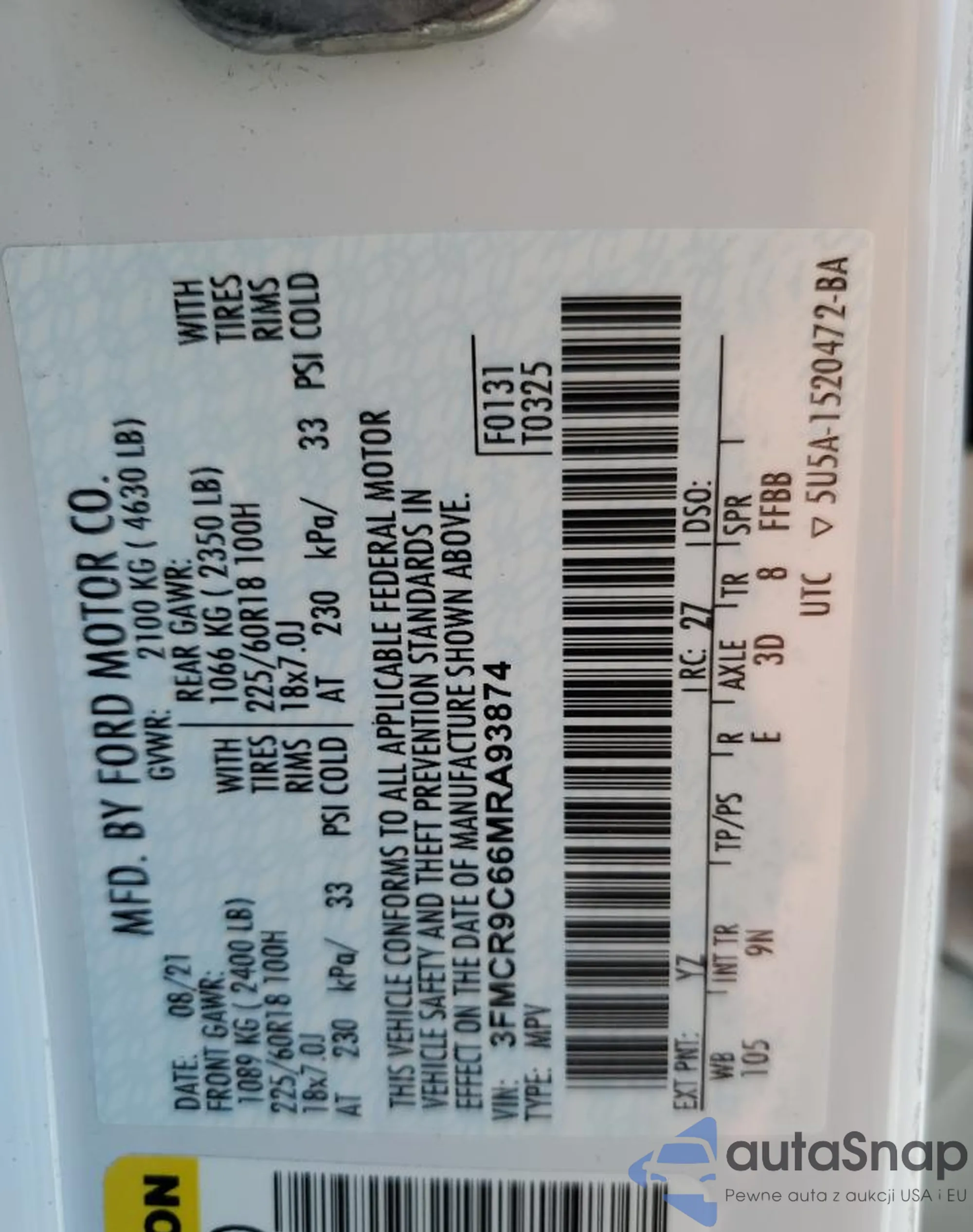 LOT: 80272065 VIN: 3FMCR9C66MRA93874