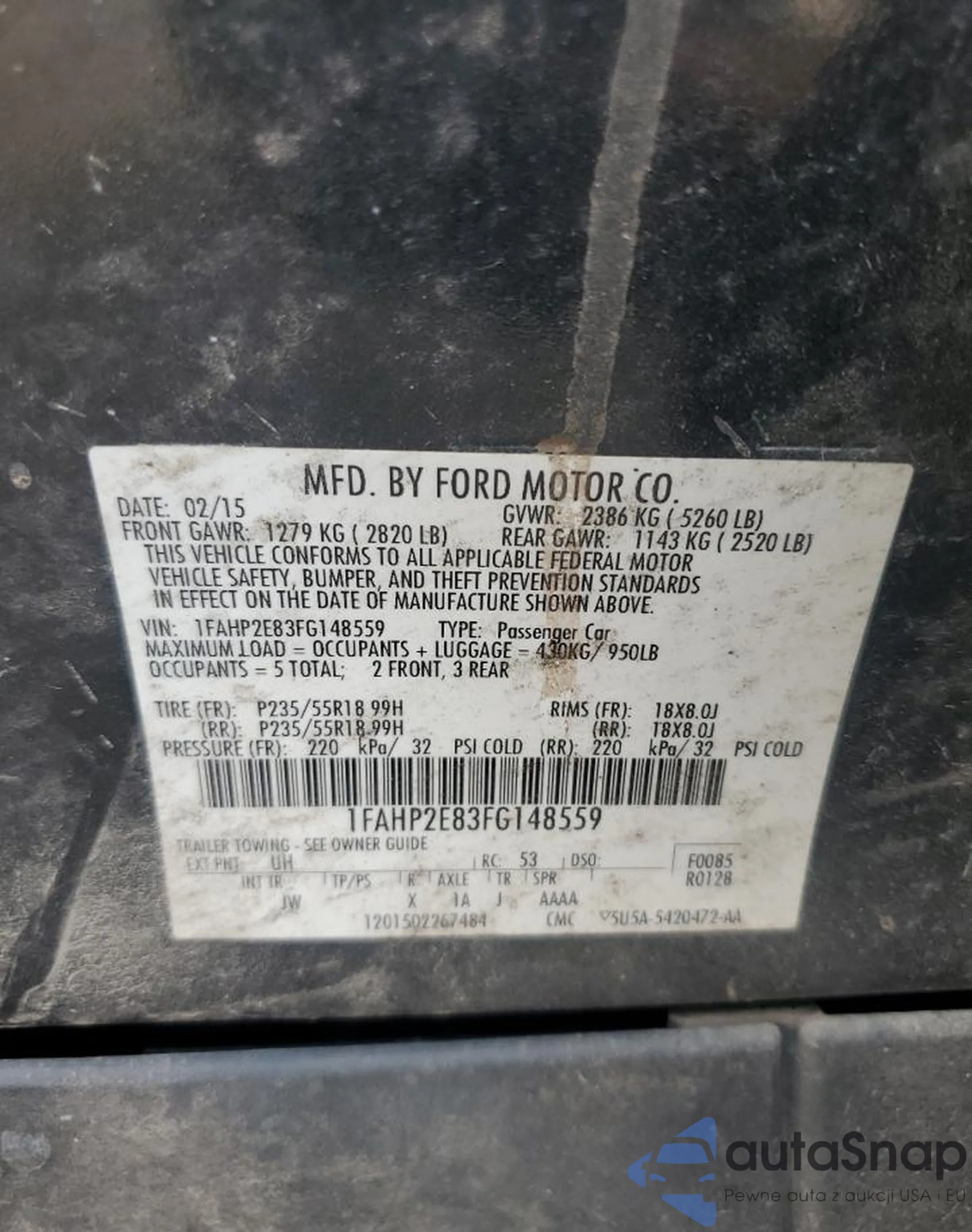LOT: 80963465 VIN: 1FAHP2E83FG148559