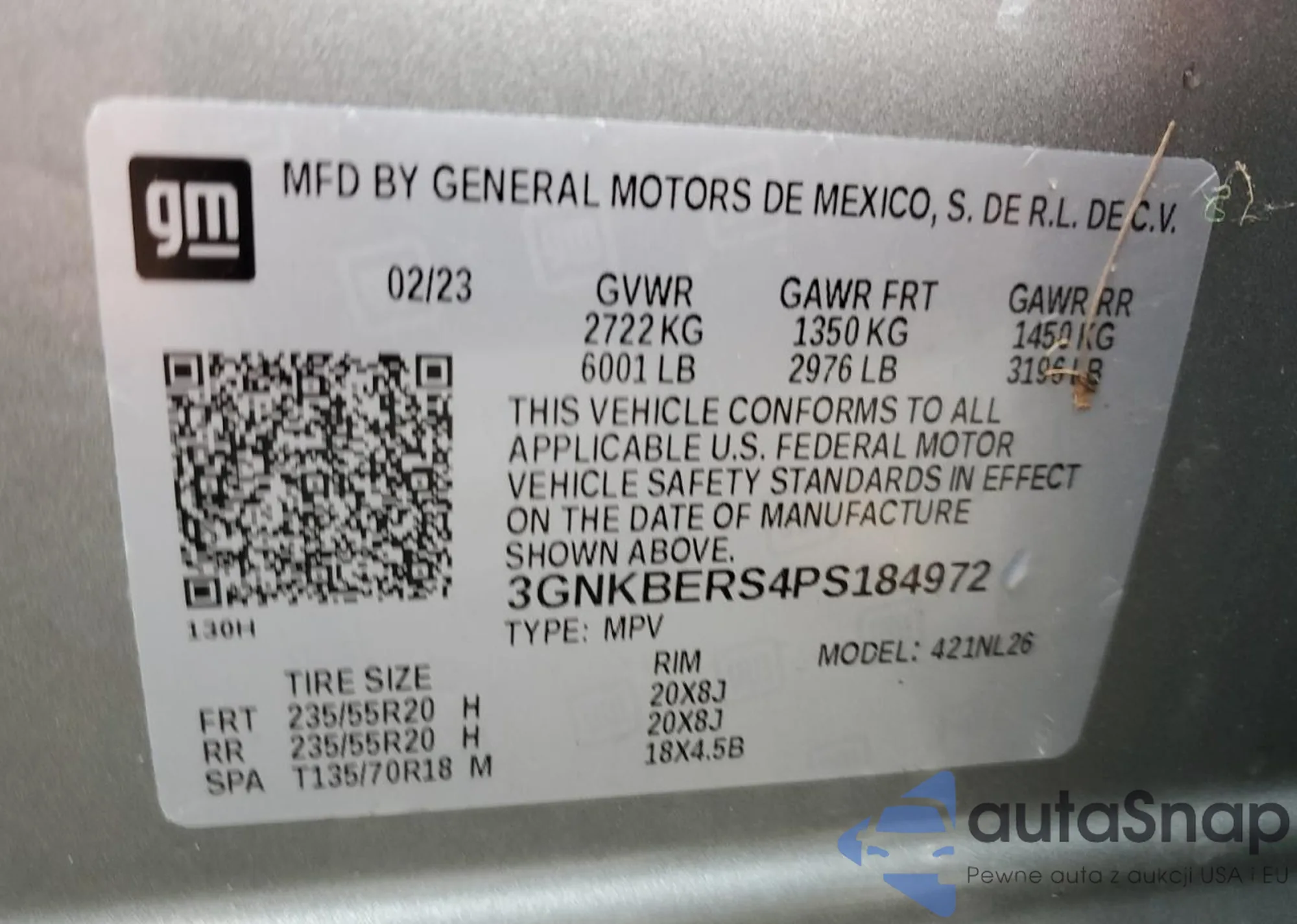 LOT: 85512875 VIN: 3GNKBERS4PS184972