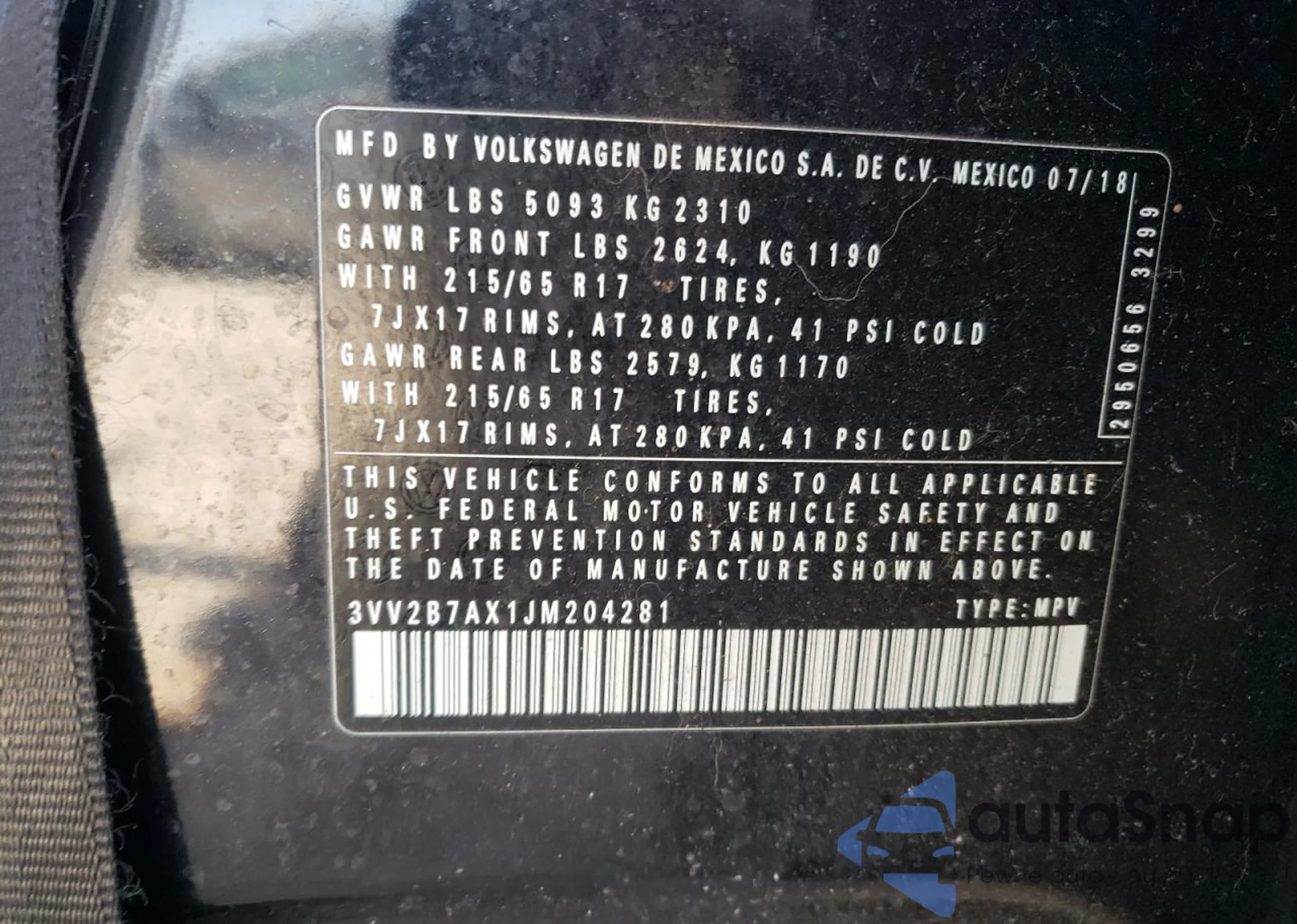 • VIN 3VV2B7AX1JM204281