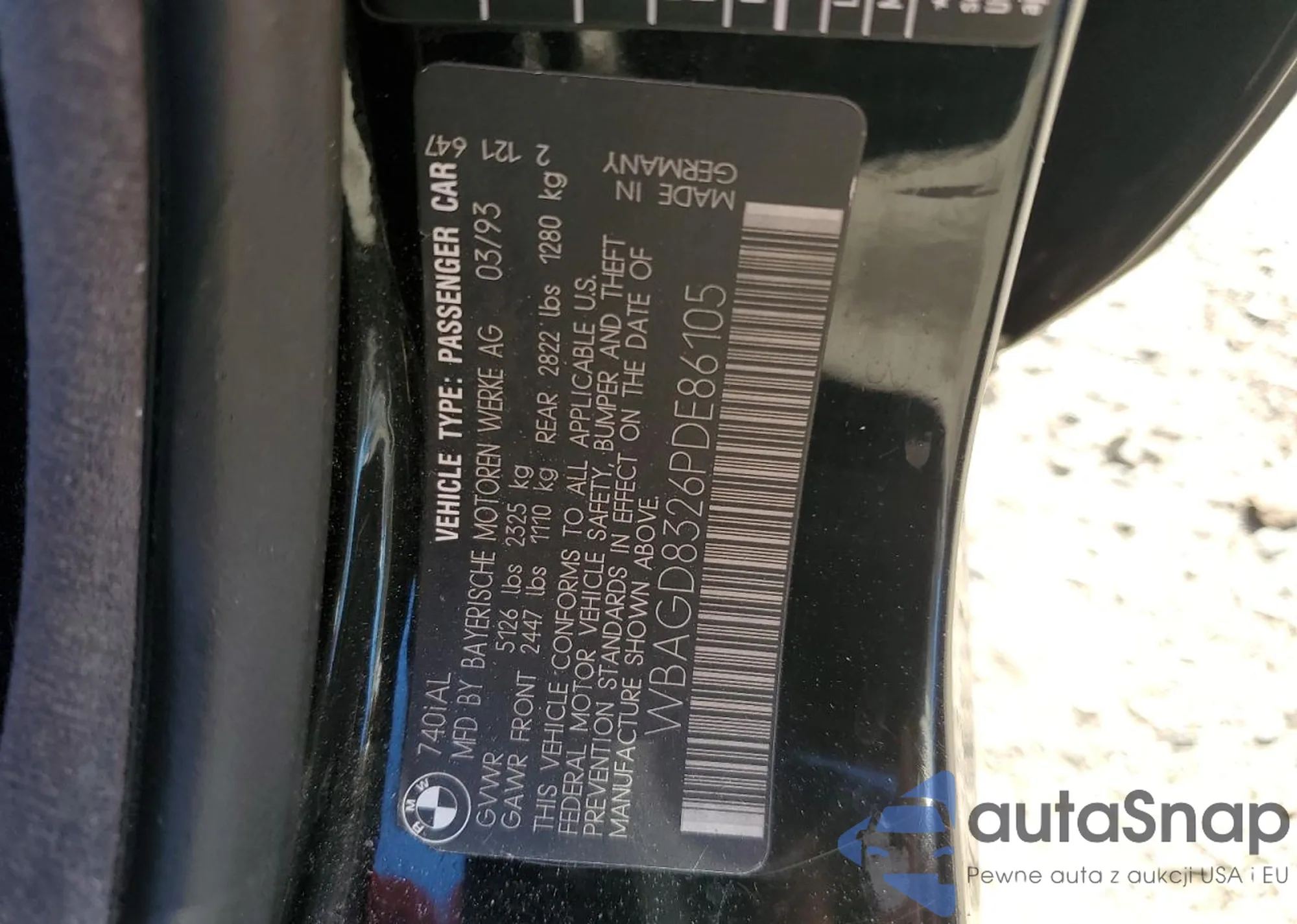 • VIN WBAGD8326PDE86105