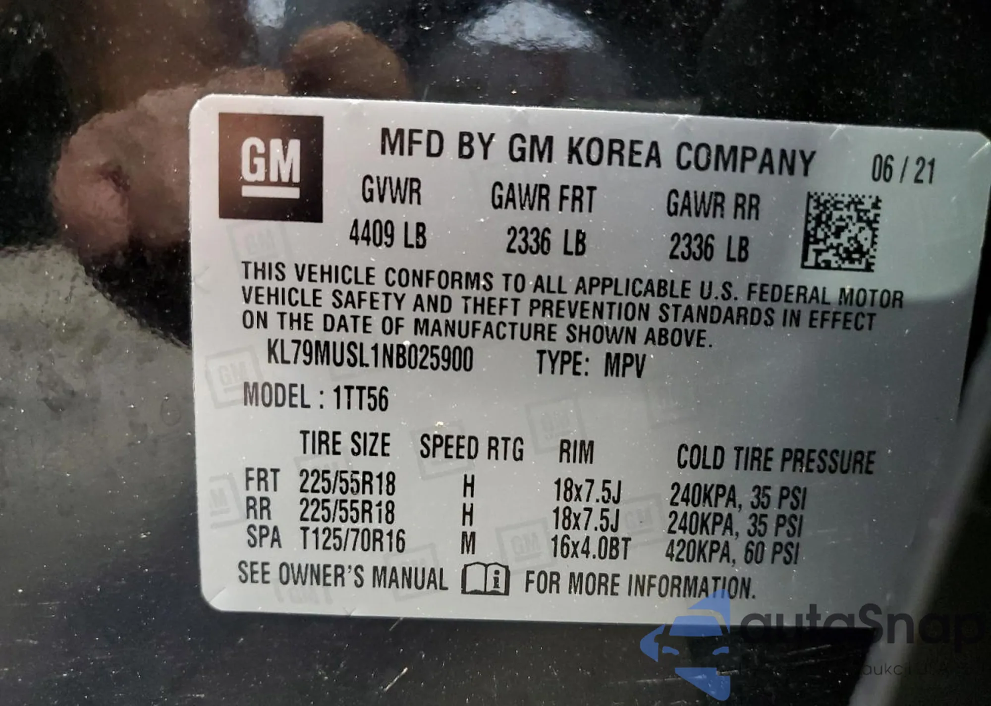 • VIN KL79MUSL1NB025900
