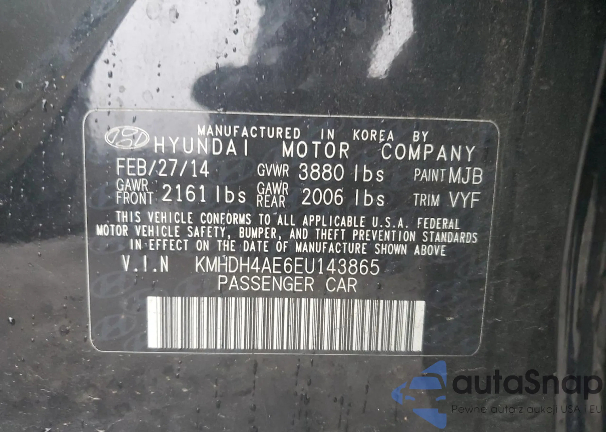 • VIN KMHDH4AE6EU143865