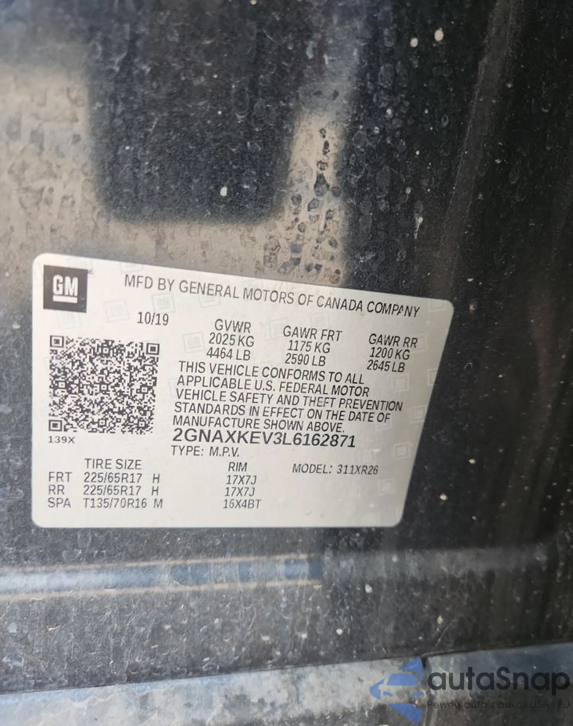 • VIN 2GNAXUEV3L6194764