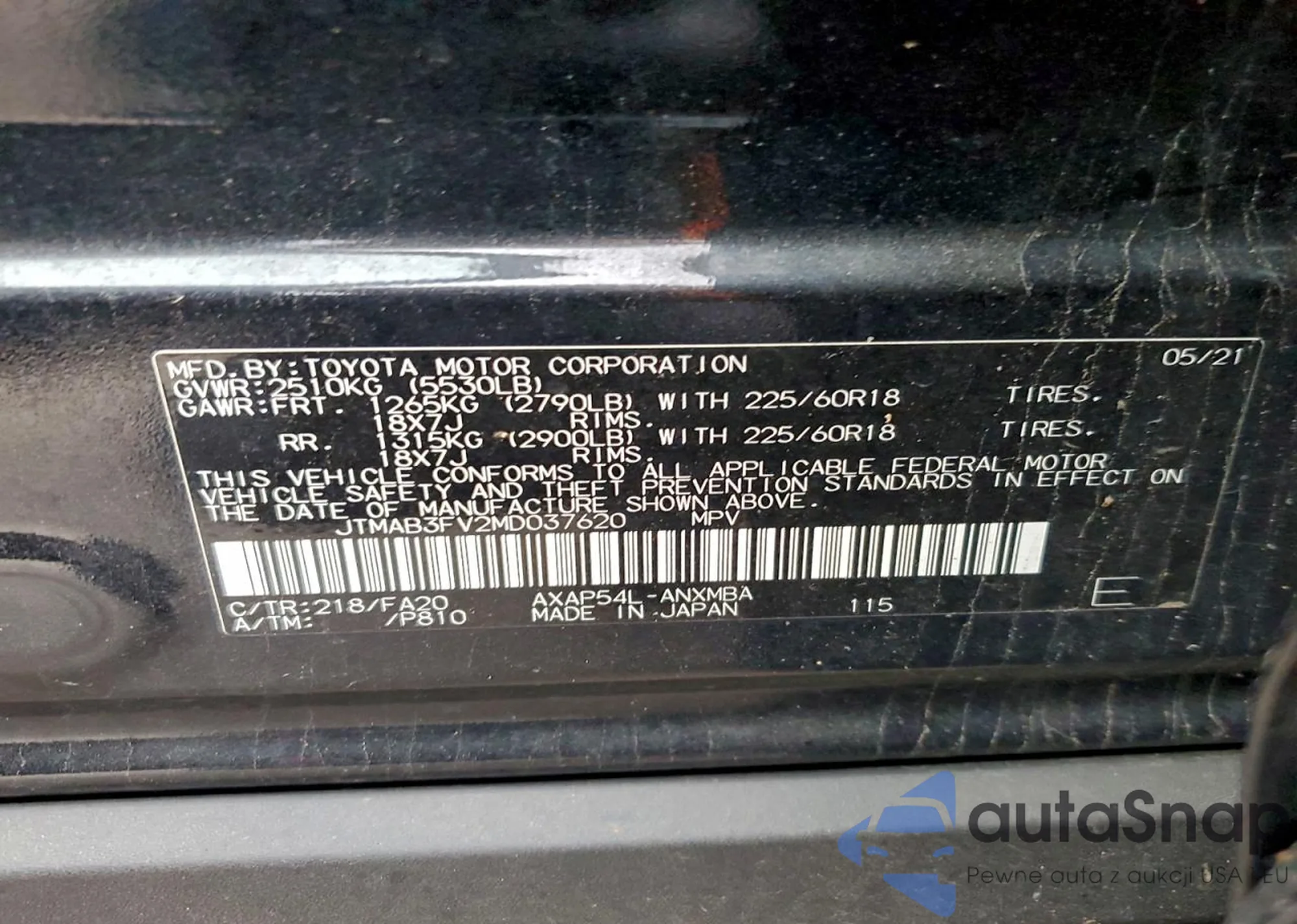 LOT: 91224785 VIN: ZACNJDD1XMPM51771