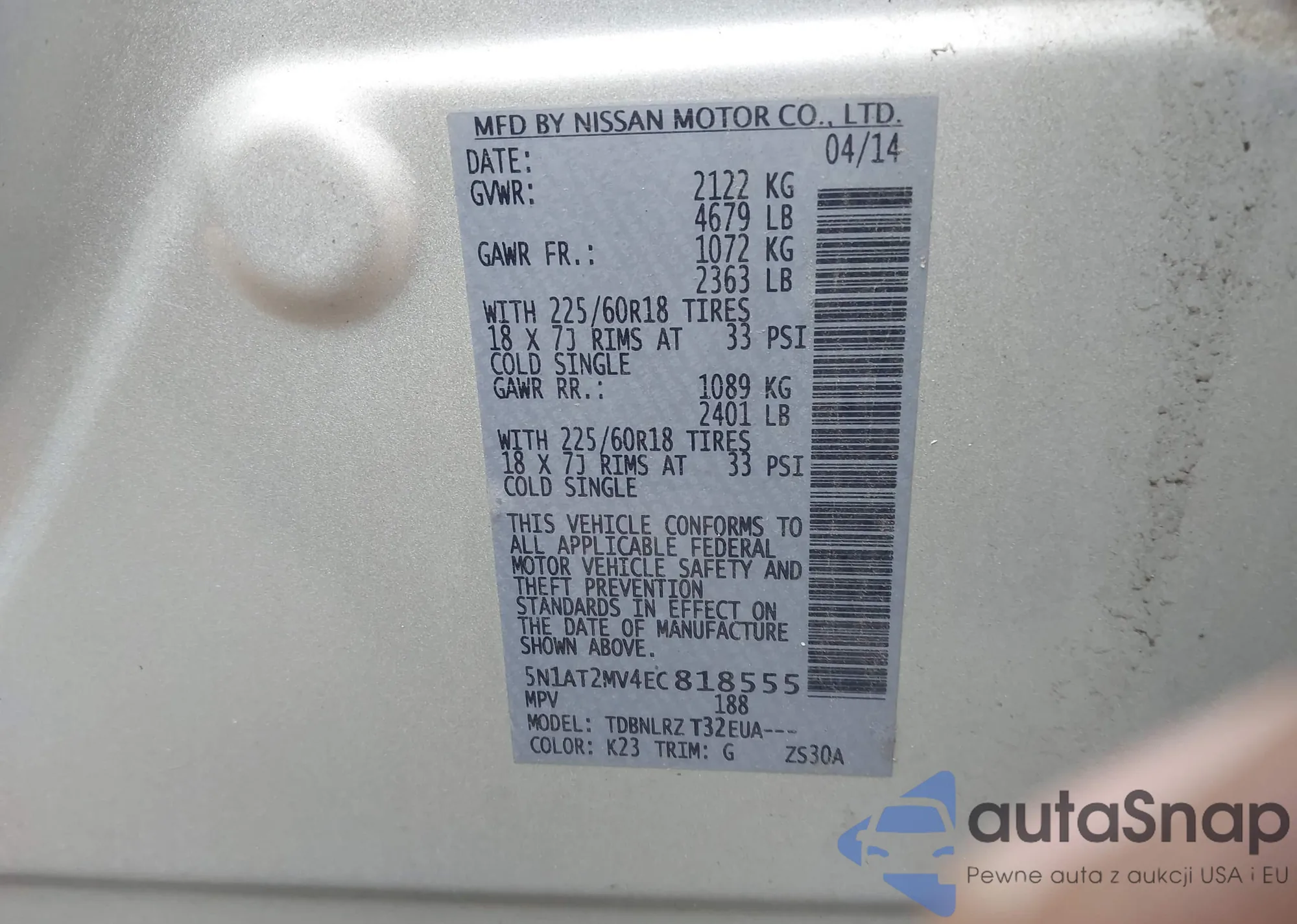 • VIN 1N4BL4BV6LC269435