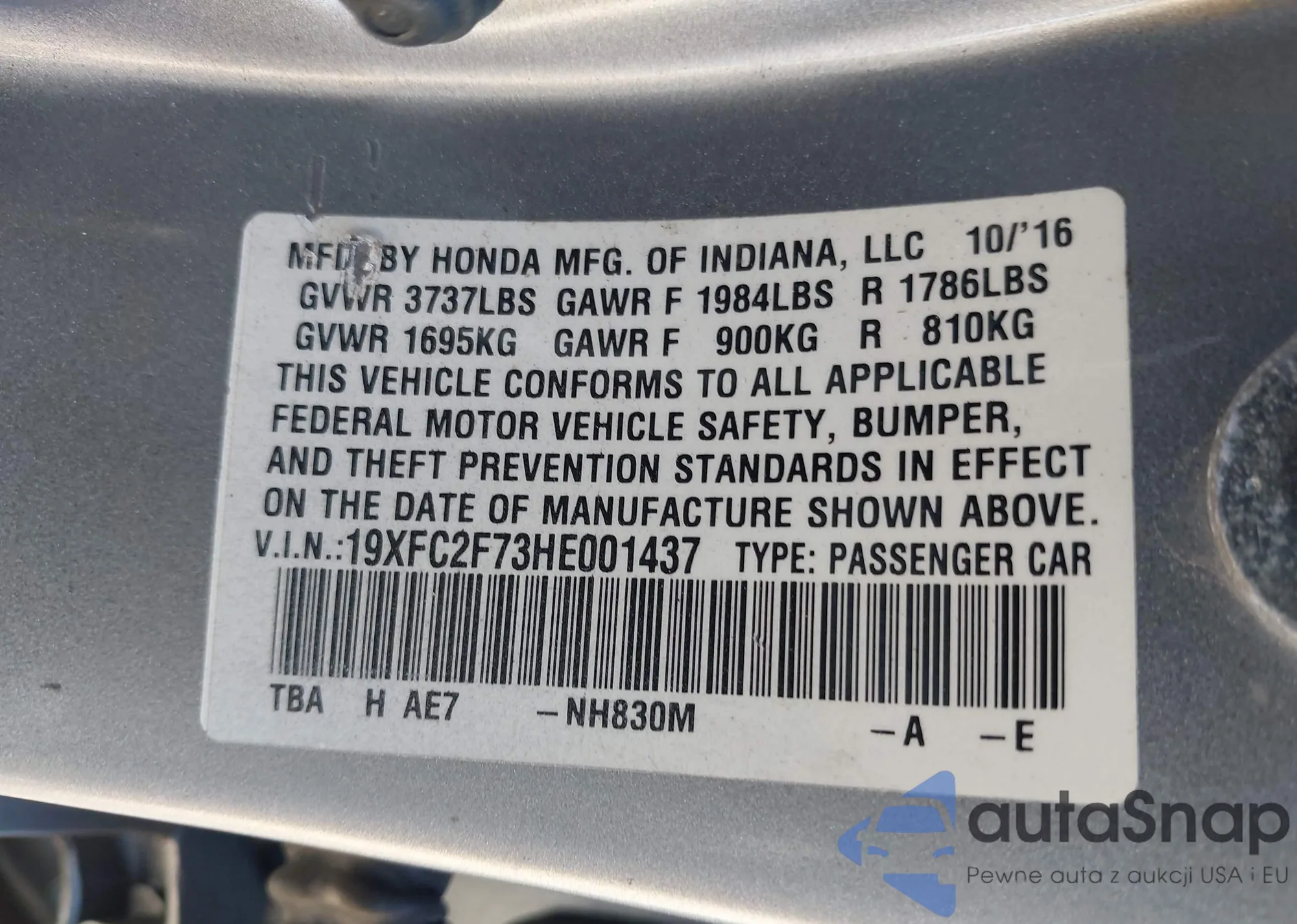 • VIN 19XFC2F73HE001437