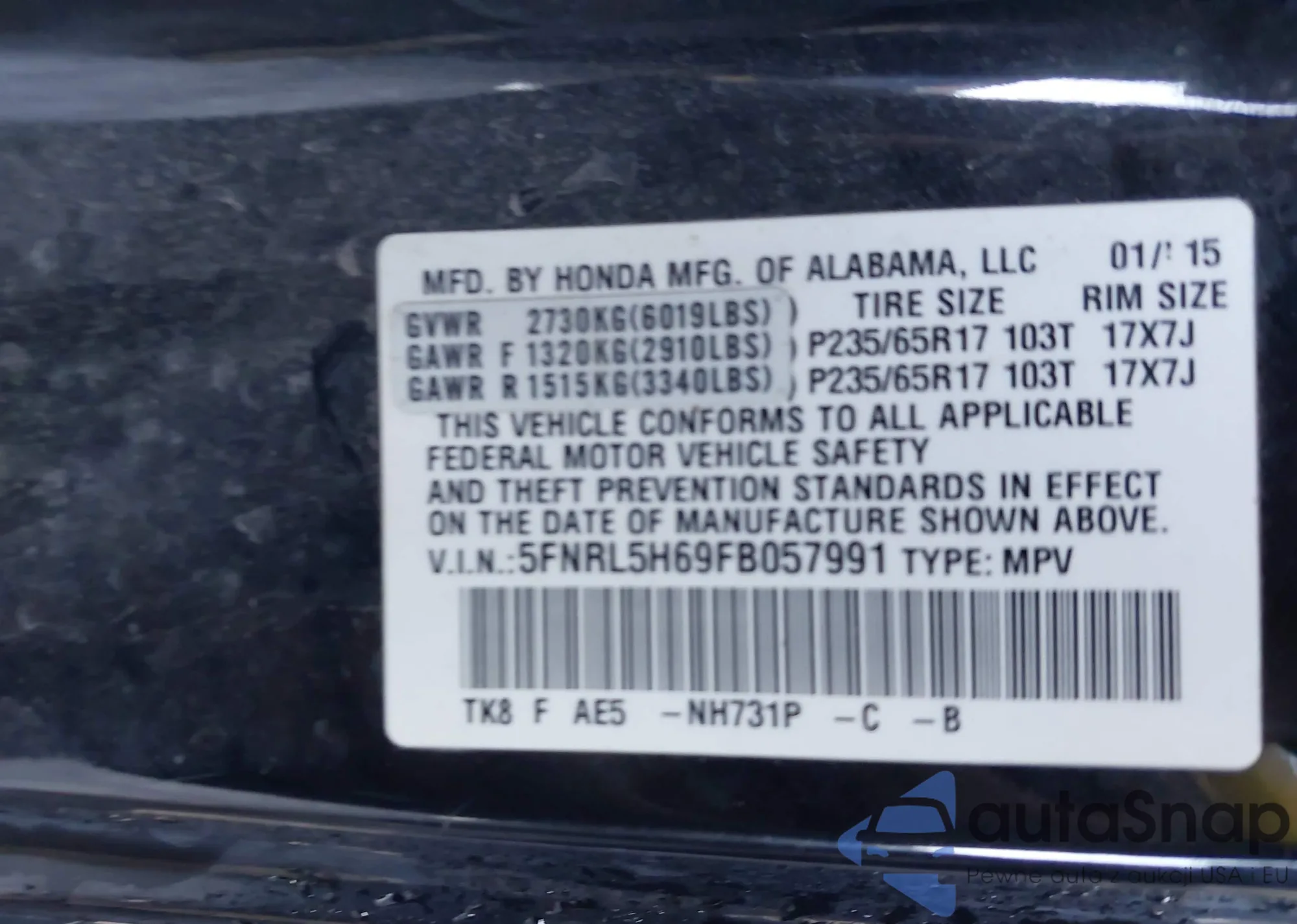 LOT: 43838283 VIN: 3N1AB7AP0FY336204