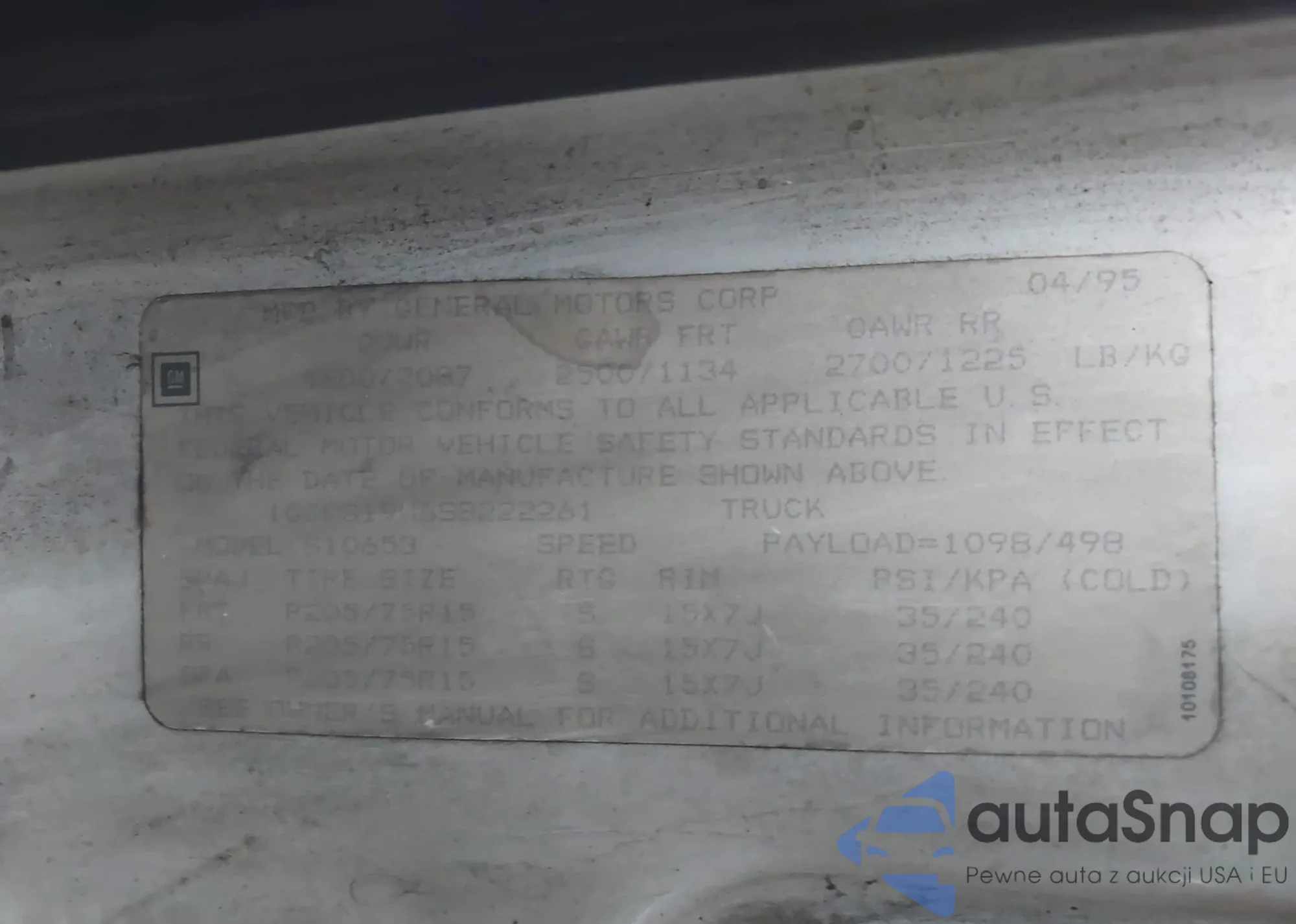• VIN 1GCCS19W6S8222261