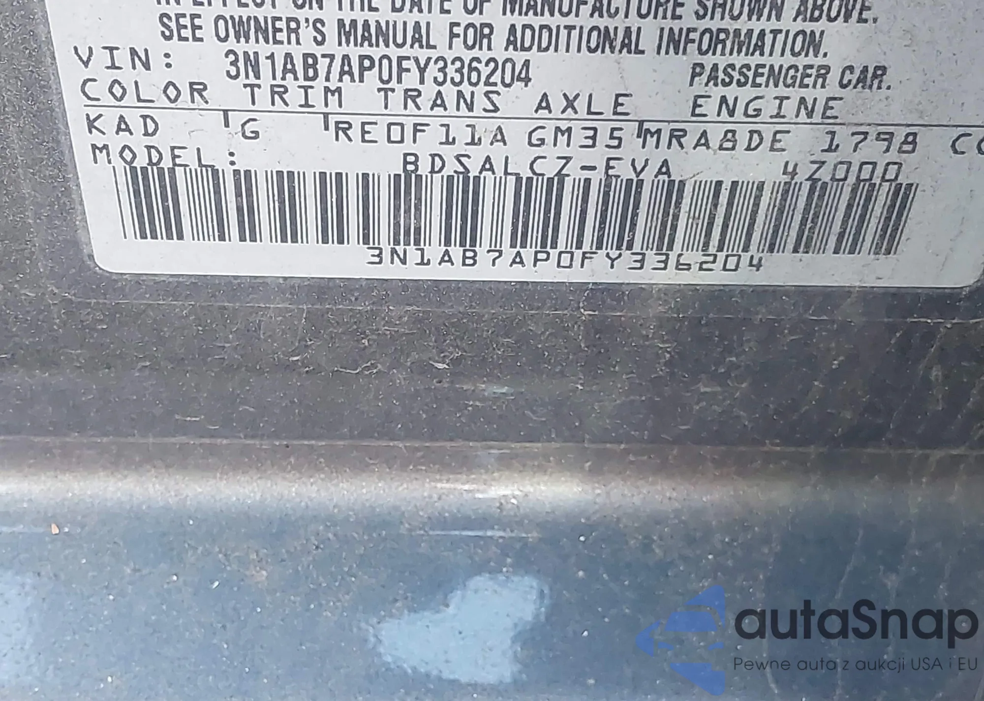 • VIN 3N1AB7AP0FY336204