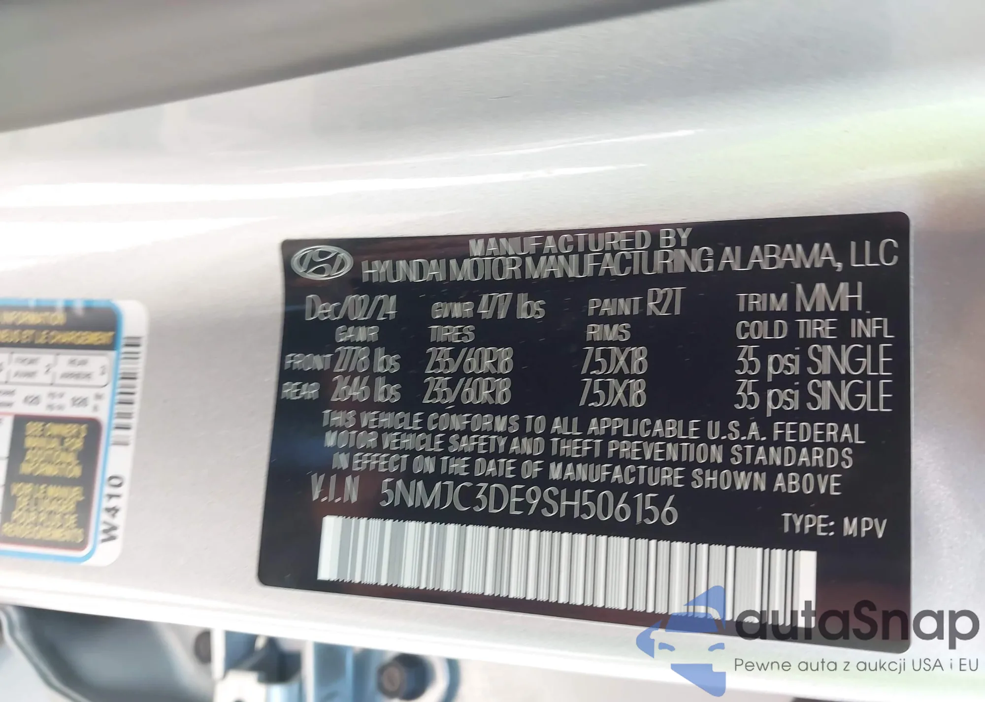 • VIN 5NMJC3DE9SH506156