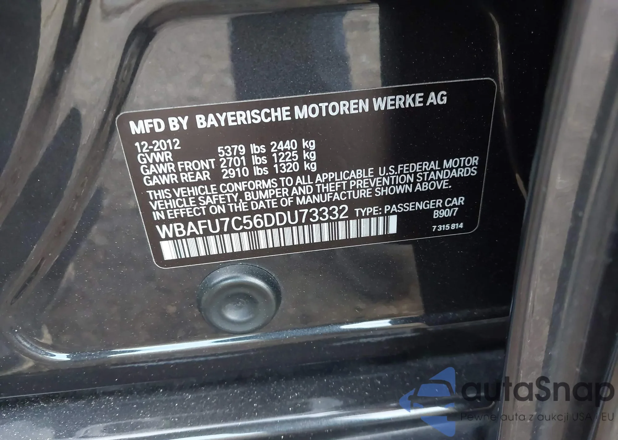 • VIN WBAFU7C56DDU73332