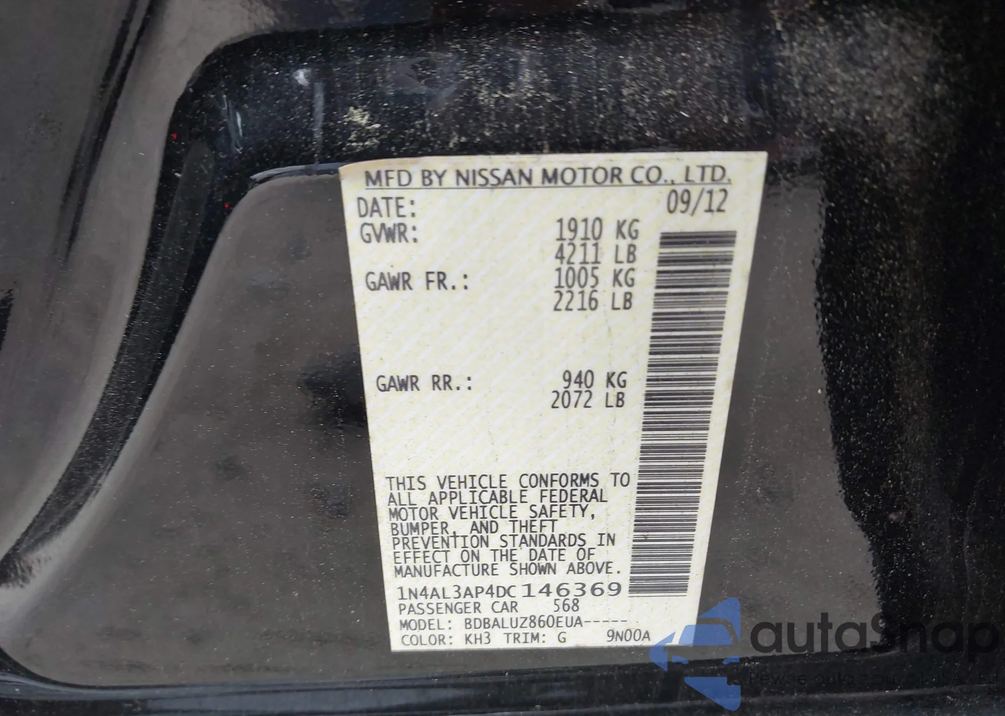 LOT: 43729448 VIN: WBAFU7C56DDU73332