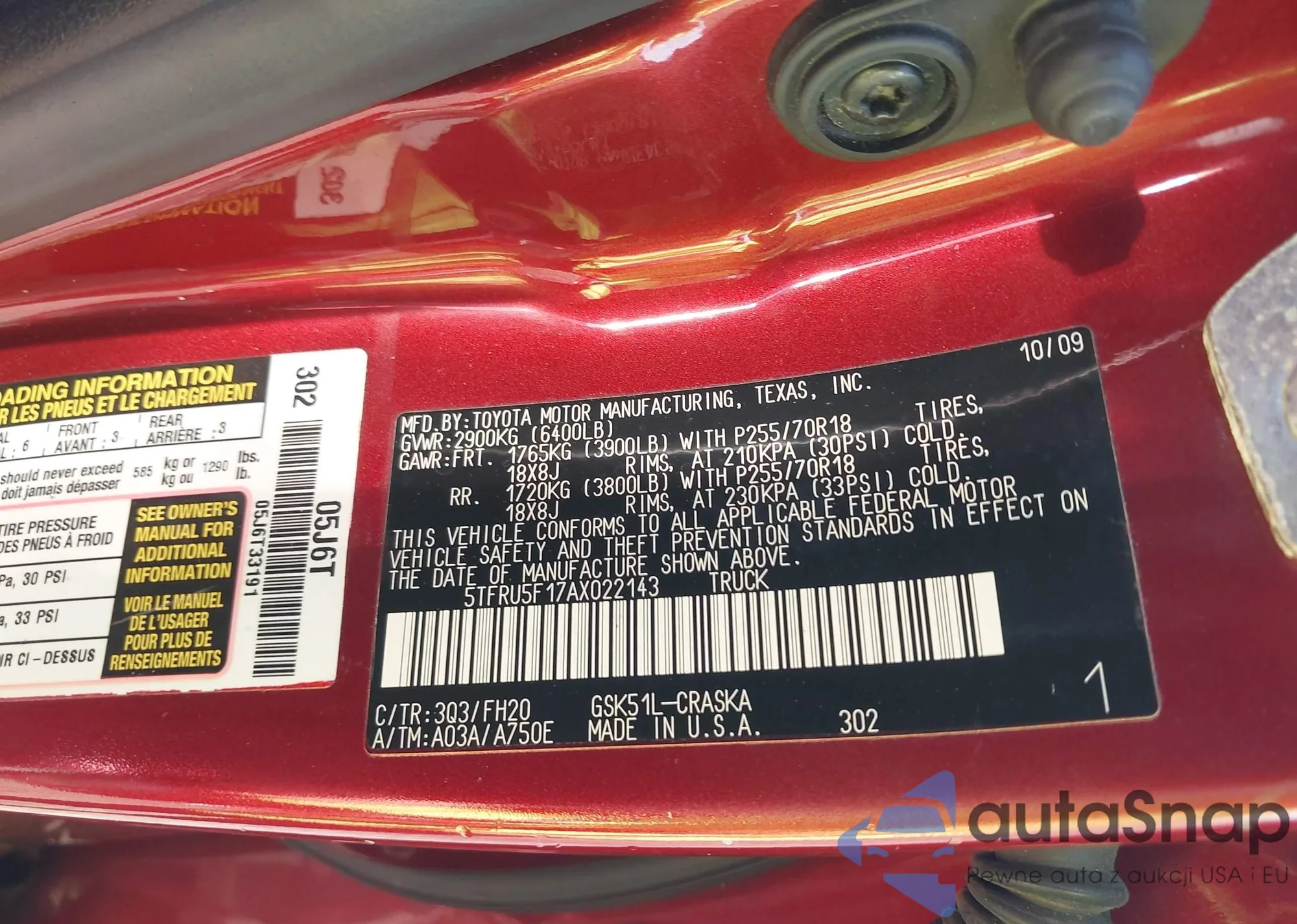 LOT: 43784785 VIN: 5TFRU5F17AX022143