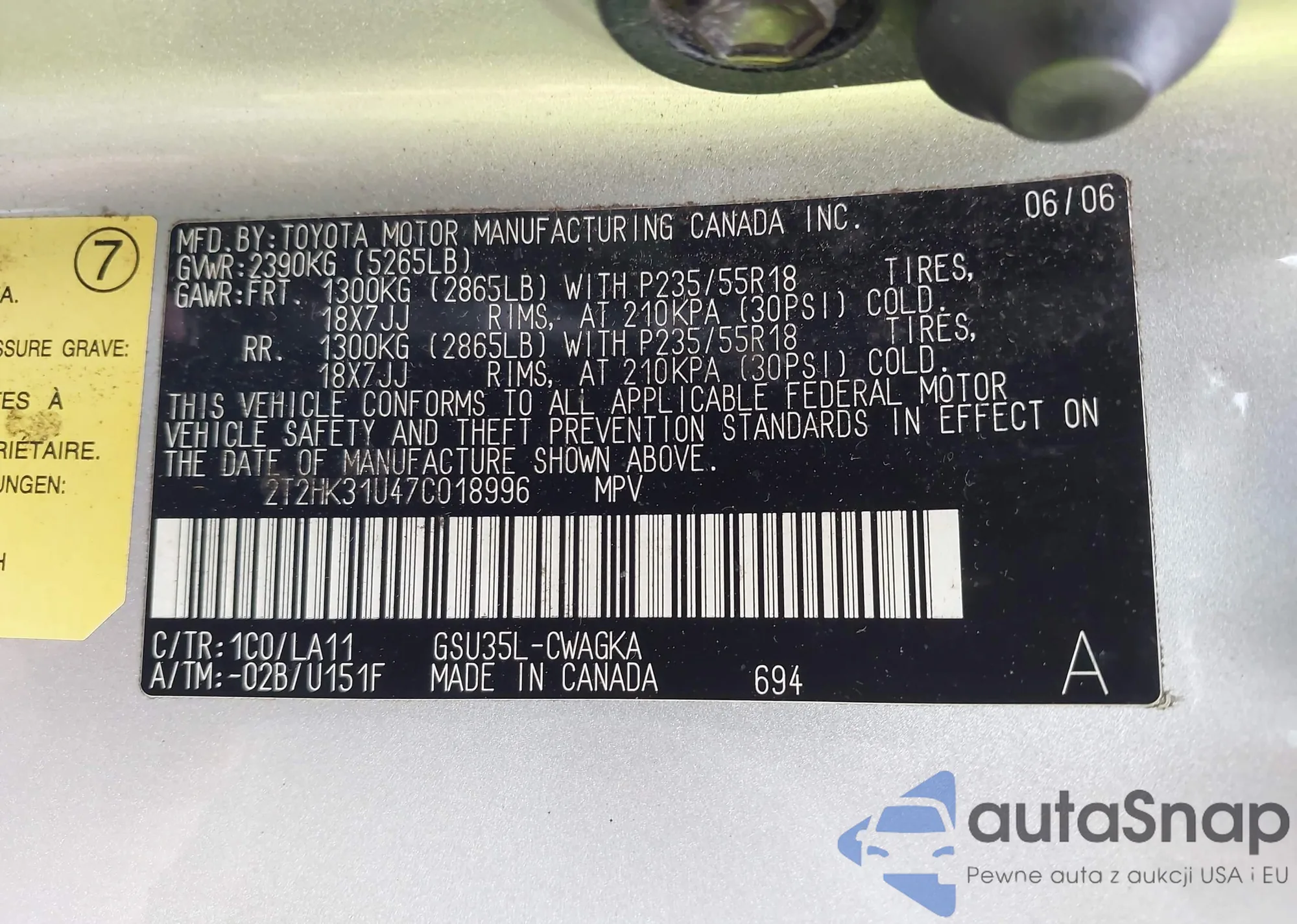 • VIN 4T1BE32K66U678372
