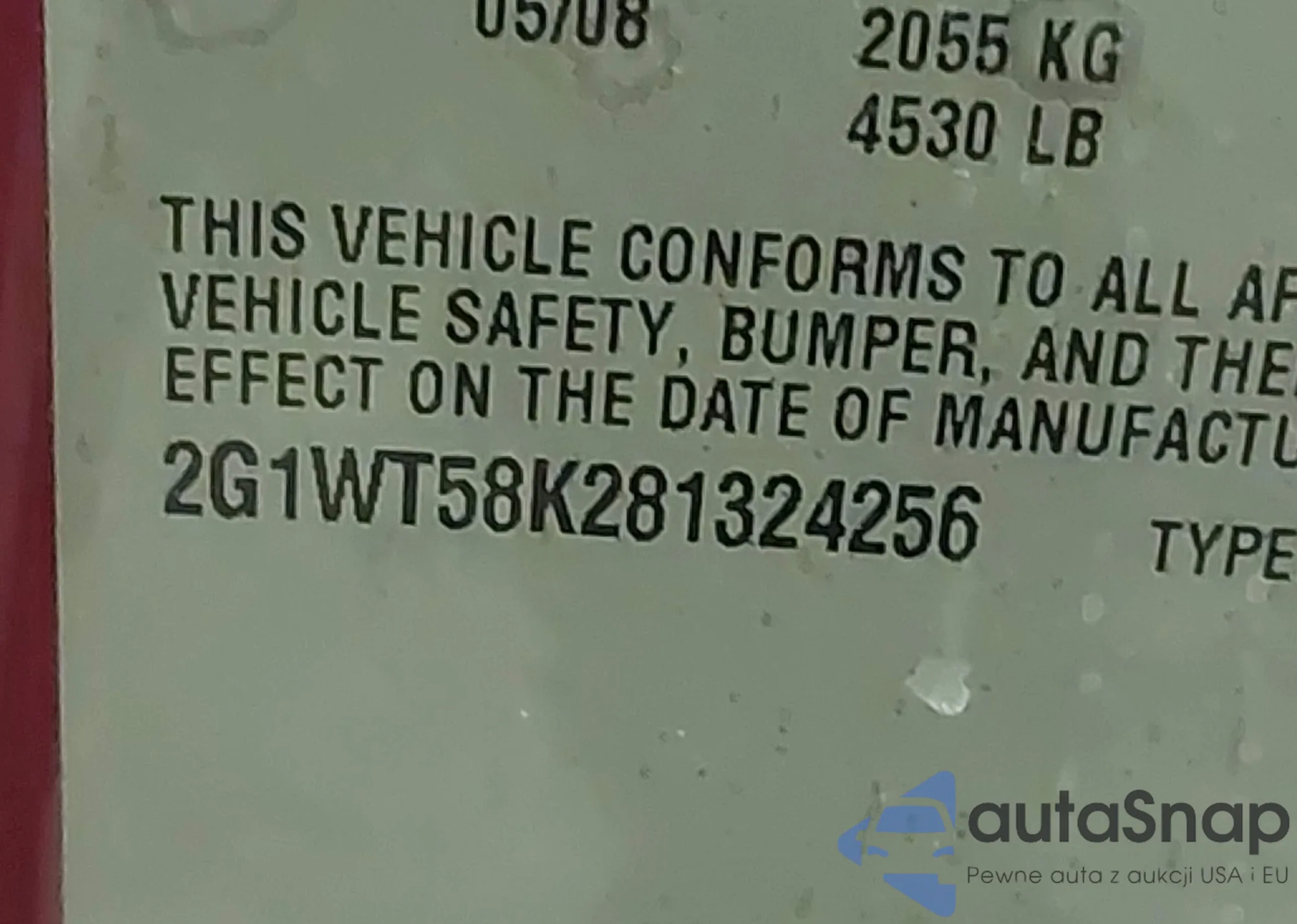 LOT: 43865802 VIN: 1G2ZG57N284255677