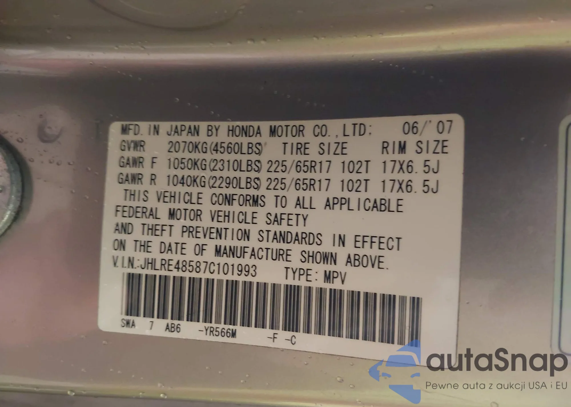 • VIN 1HGCV1F16KA066846